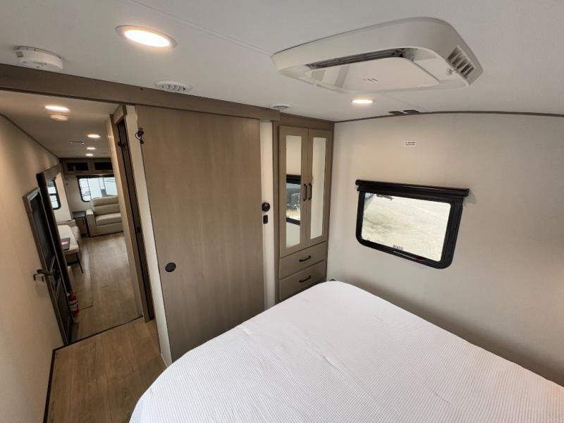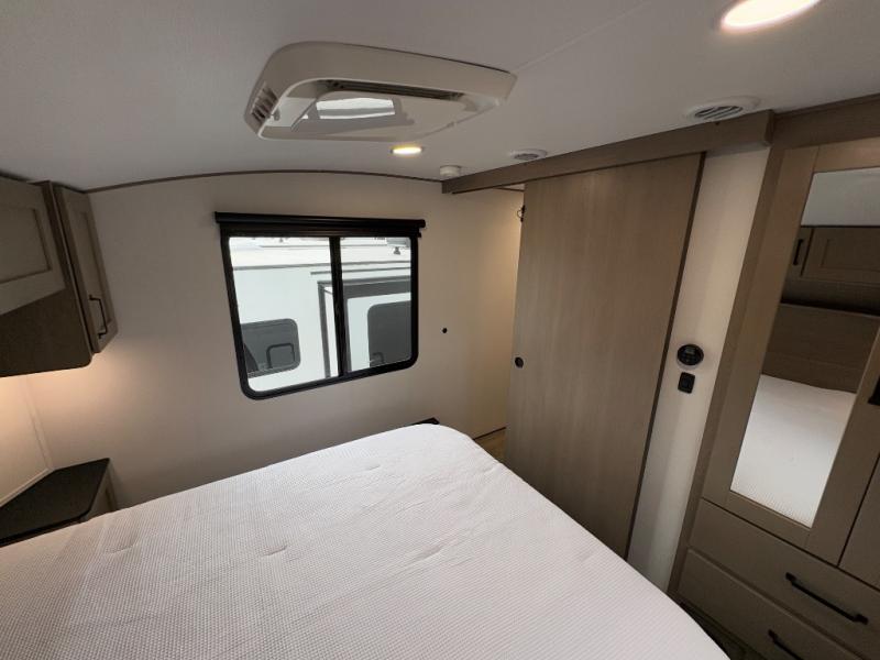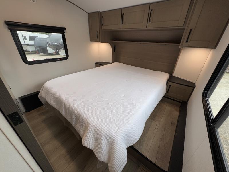 - Front private bedroom with walk-around queen bed and ample storage