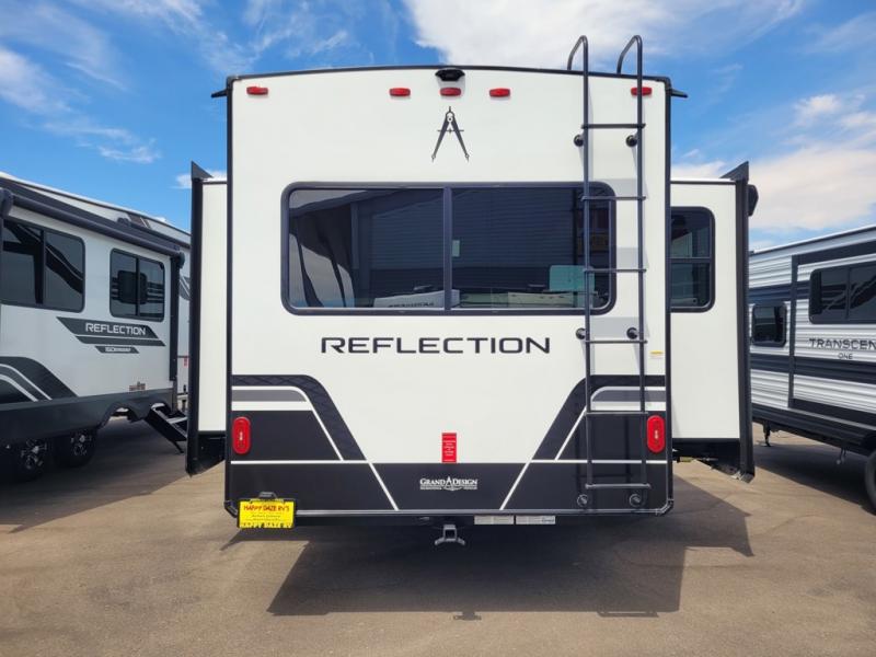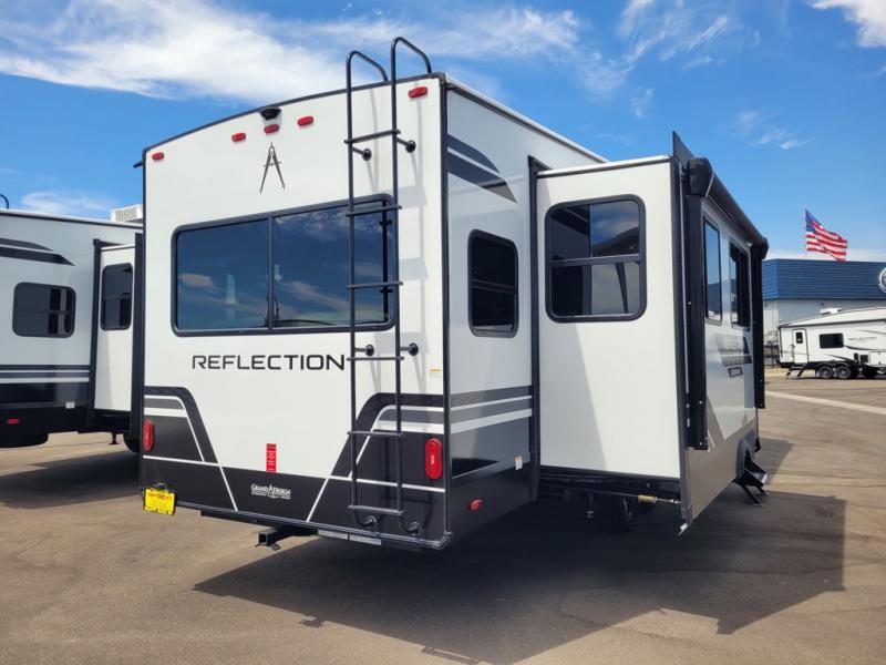 With any Reflection 150 Series fifth wheel by Grand Design, there is more available payload capacity and a broader range of half-ton trucks capable of towing this fifth wheel, and no slider hitch is needed thanks to the 90-degree turning radius which makes them short bed friendly and easier to tow. The mandatory Ultimate Power package provides a "One-Touch" automatic leveling system and a detachable power cord with LED light for easy setup, plus motion sensor pass-through lighting and entry lighting, and the Tire Linc TPMS will help you stay safe on the road. The interior offers residential luxury from the cabinetry and premium Congoleum flooring, to the booth dinette and residential-style window treatment. Make your refined decision today!