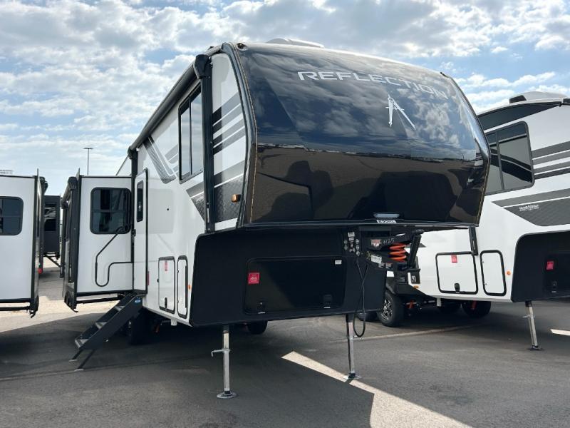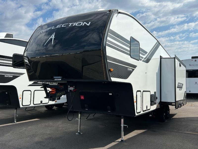 With any Reflection 150 Series fifth wheel by Grand Design, there is more available payload capacity and a broader range of half-ton trucks capable of towing this fifth wheel, and no slider hitch is needed thanks to the 90-degree turning radius which makes them short bed friendly and easier to tow. The mandatory Ultimate Power package provides a "One-Touch" automatic leveling system and a detachable power cord with LED light for easy setup, plus motion sensor pass-through lighting and entry lighting, and the Tire Linc TPMS will help you stay safe on the road. The interior offers residential luxury from the cabinetry and premium Congoleum flooring, to the booth dinette and residential-style window treatment. Make your refined decision today!