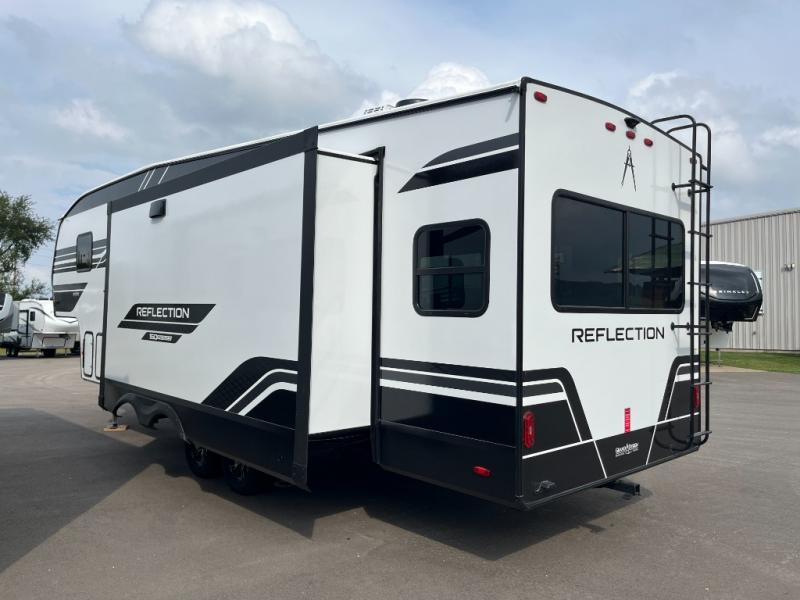 With any Reflection 150 Series fifth wheel by Grand Design, there is more available payload capacity and a broader range of half-ton trucks capable of towing this fifth wheel, and no slider hitch is needed thanks to the 90-degree turning radius which makes them short bed friendly and easier to tow. The mandatory Ultimate Power package provides a "One-Touch" automatic leveling system and a detachable power cord with LED light for easy setup, plus motion sensor pass-through lighting and entry lighting, and the Tire Linc TPMS will help you stay safe on the road. The interior offers residential luxury from the cabinetry and premium Congoleum flooring, to the booth dinette and residential-style window treatment. Make your refined decision today!