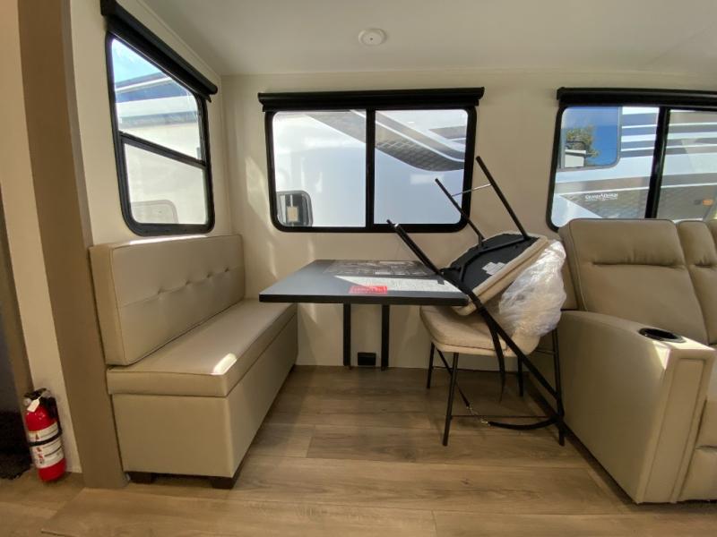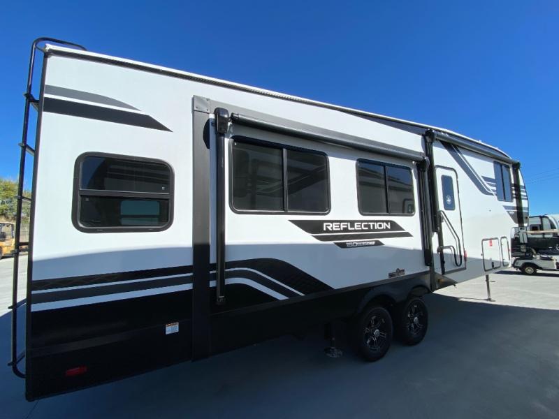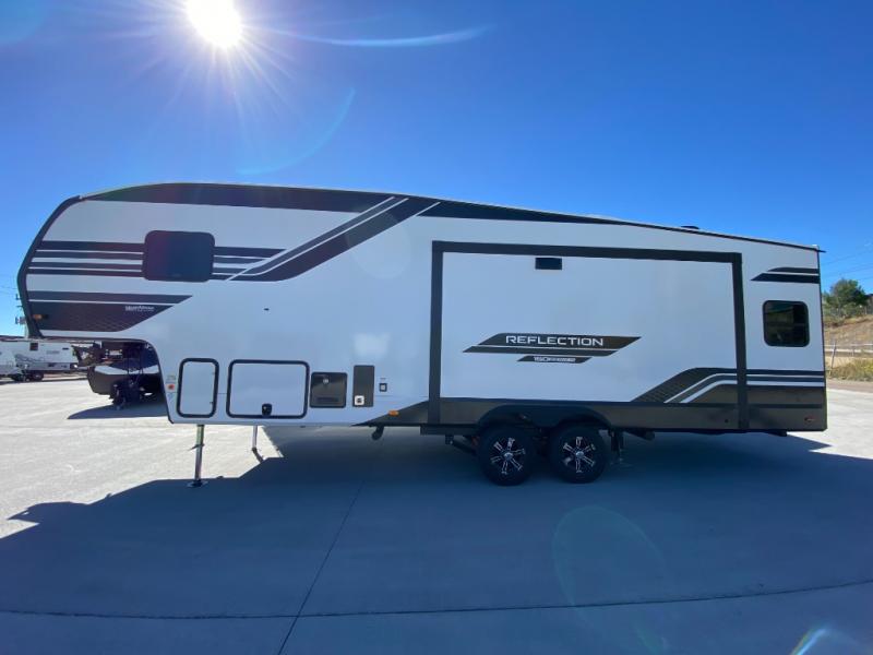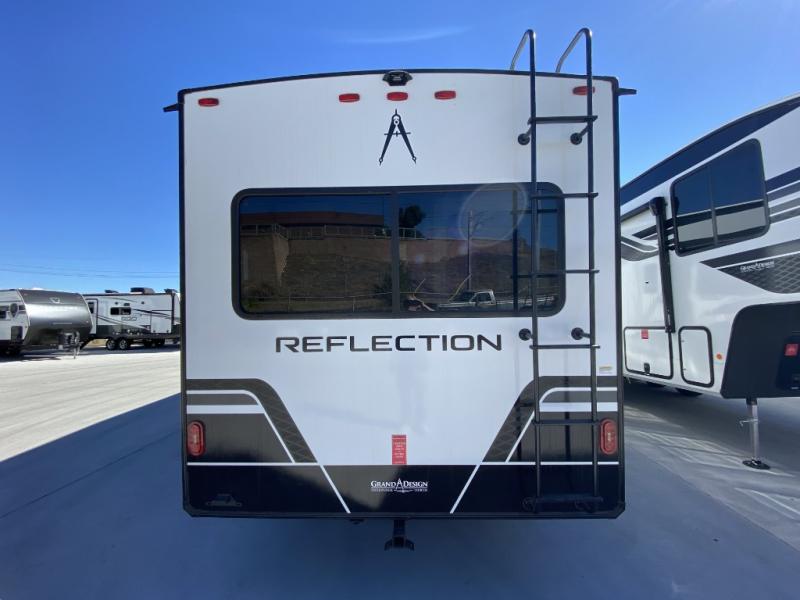 With any Reflection 150 Series fifth wheel by Grand Design, there is more available payload capacity and a broader range of half-ton trucks capable of towing this fifth wheel, and no slider hitch is needed thanks to the 90-degree turning radius which makes them short bed friendly and easier to tow. The mandatory Ultimate Power package provides a "One-Touch" automatic leveling system and a detachable power cord with LED light for easy setup, plus motion sensor pass-through lighting and entry lighting, and the Tire Linc TPMS will help you stay safe on the road. The interior offers residential luxury from the cabinetry and premium Congoleum flooring, to the booth dinette and residential-style window treatment. Make your refined decision today!