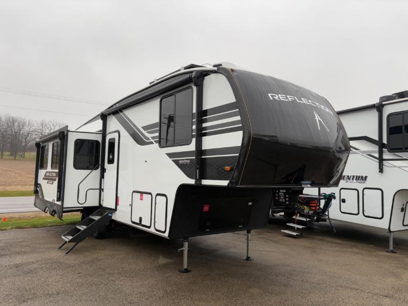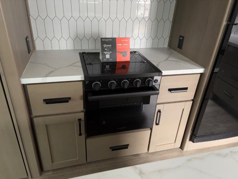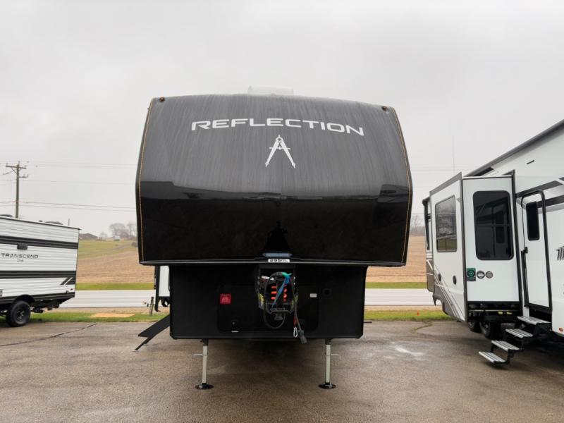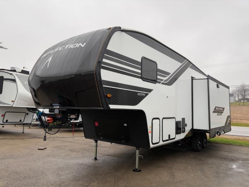 With any Reflection 150 Series fifth wheel by Grand Design, there is more available payload capacity and a broader range of half-ton trucks capable of towing this fifth wheel, and no slider hitch is needed thanks to the 90-degree turning radius which makes them short bed friendly and easier to tow. The mandatory Ultimate Power package provides a "One-Touch" automatic leveling system and a detachable power cord with LED light for easy setup, plus motion sensor pass-through lighting and entry lighting, and the Tire Linc TPMS will help you stay safe on the road. The interior offers residential luxury from the cabinetry and premium Congoleum flooring, to the booth dinette and residential-style window treatment. Make your refined decision today!
