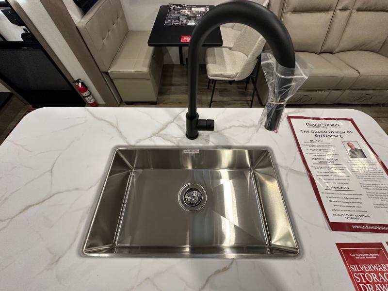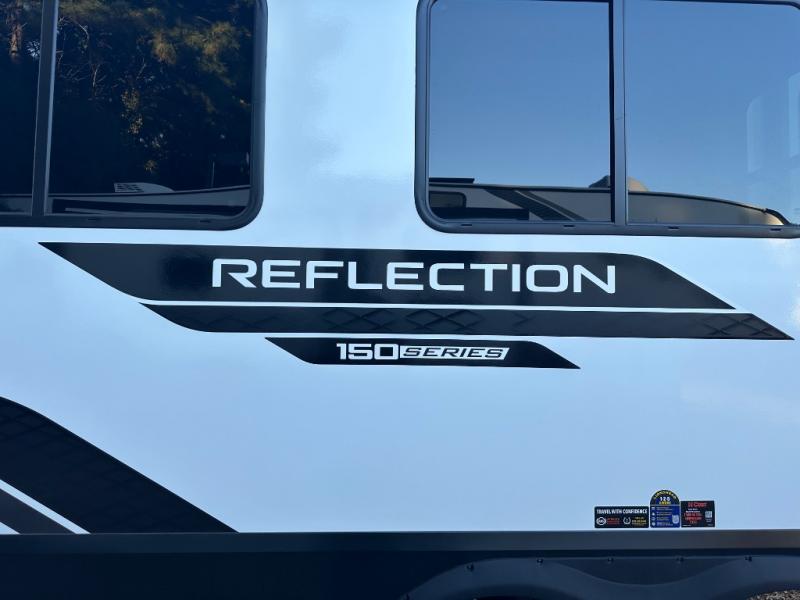 With any Reflection 150 Series fifth wheel by Grand Design, there is more available payload capacity and a broader range of half-ton trucks capable of towing this fifth wheel, and no slider hitch is needed thanks to the 90-degree turning radius which makes them short bed friendly and easier to tow. The mandatory Ultimate Power package provides a "One-Touch" automatic leveling system and a detachable power cord with LED light for easy setup, plus motion sensor pass-through lighting and entry lighting, and the Tire Linc TPMS will help you stay safe on the road. The interior offers residential luxury from the cabinetry and premium Congoleum flooring, to the booth dinette and residential-style window treatment. Make your refined decision today!