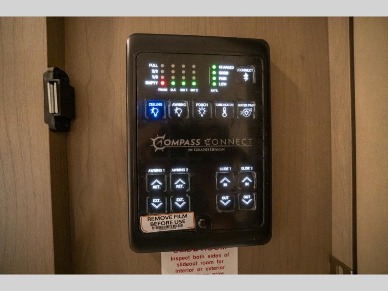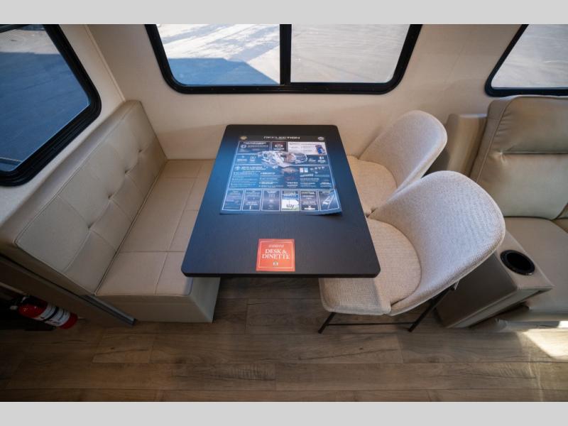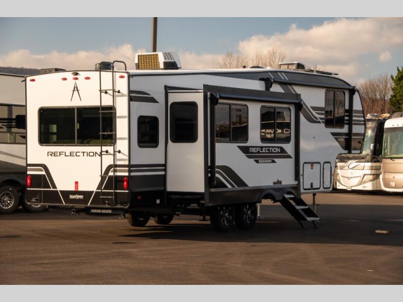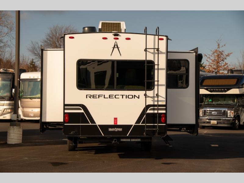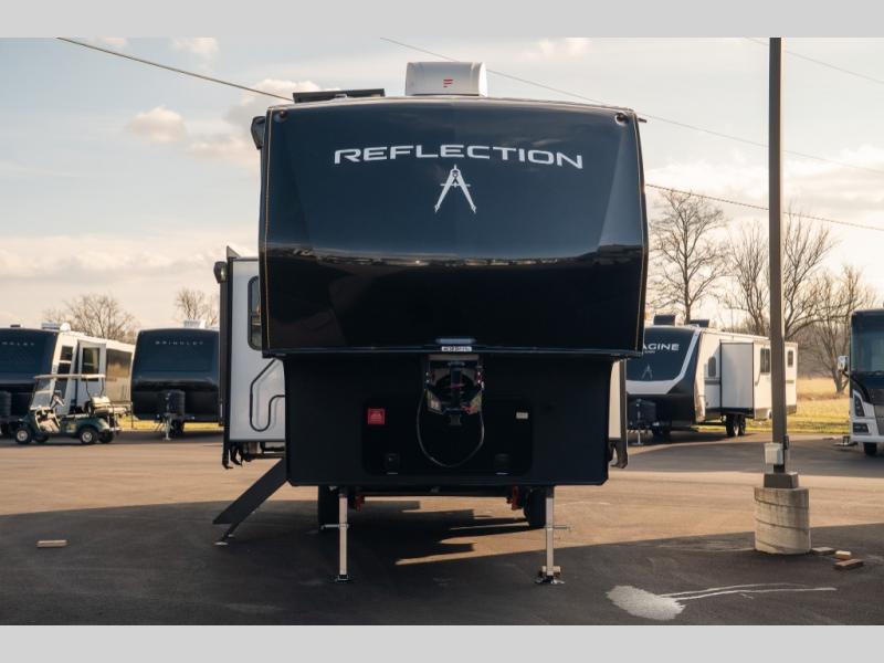 With any Reflection 150 Series fifth wheel by Grand Design, there is more available payload capacity and a broader range of half-ton trucks capable of towing this fifth wheel, and no slider hitch is needed thanks to the 90-degree turning radius which makes them short bed friendly and easier to tow. The mandatory Ultimate Power package provides a "One-Touch" automatic leveling system and a detachable power cord with LED light for easy setup, plus motion sensor pass-through lighting and entry lighting, and the Tire Linc TPMS will help you stay safe on the road. The interior offers residential luxury from the cabinetry and premium Congoleum flooring, to the booth dinette and residential-style window treatment. Make your refined decision today!