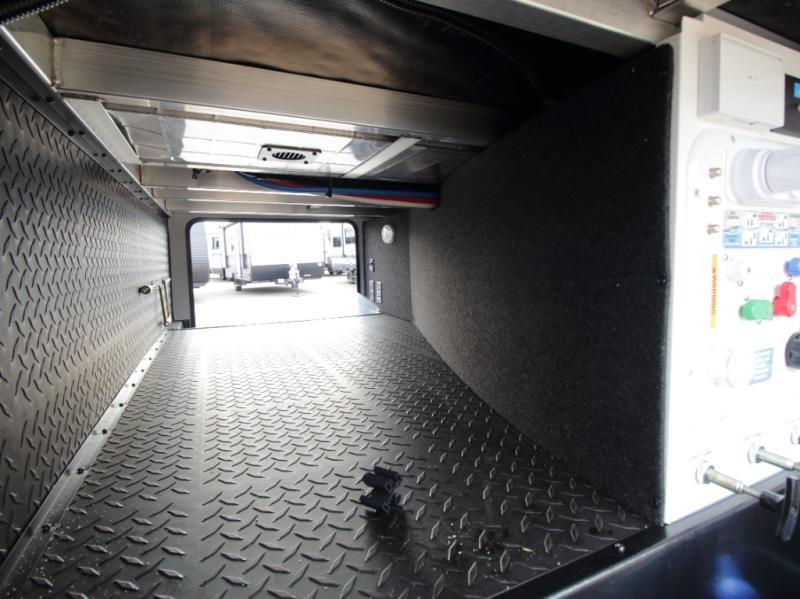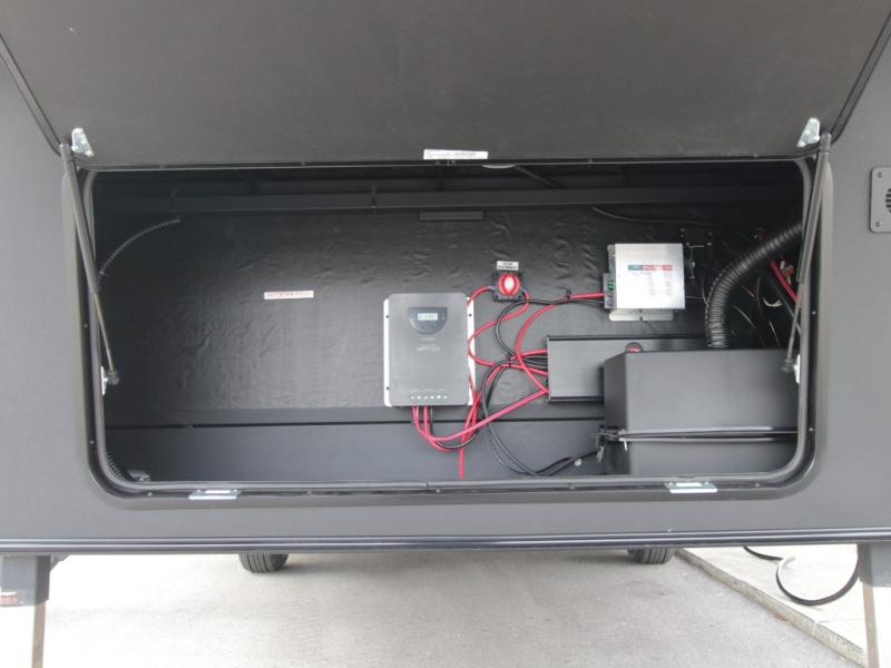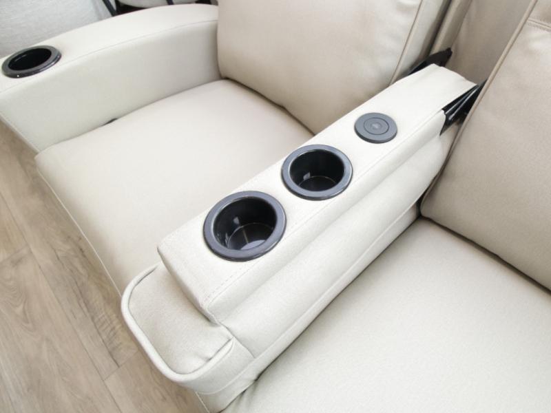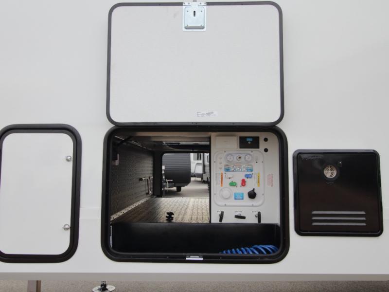 Outdoor Living Ready: Two electric awnings create shaded outdoor areas, while heated pass-through storage keeps camping chairs, gear, and essentials easily accessible.