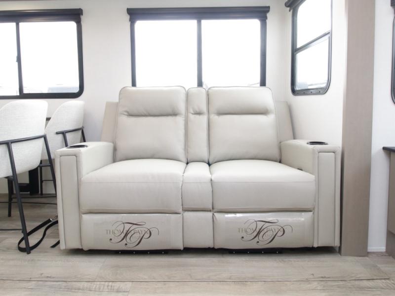 Theatre Seating & Tri-Fold Sofa: Relax in style while watching your favorite shows on the 40" LED HDTV with fireplace, perfect for cozy evenings or rainy-day downtime.