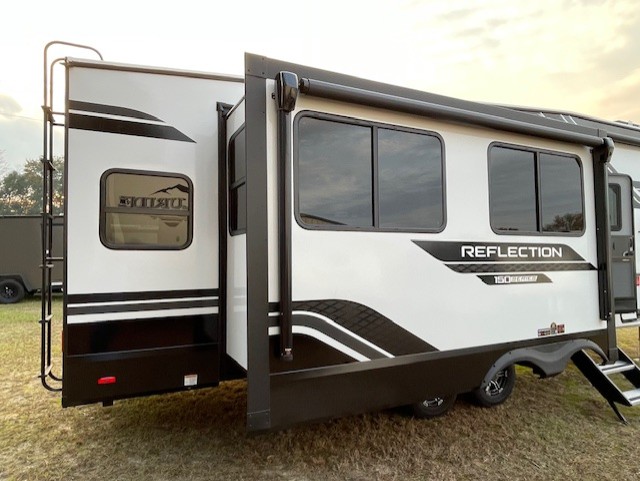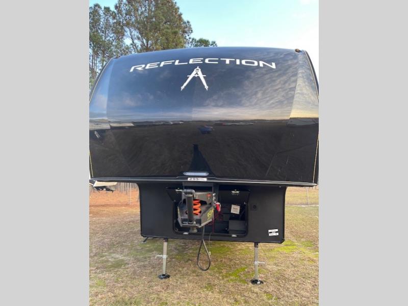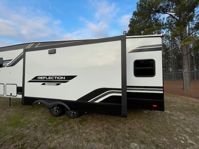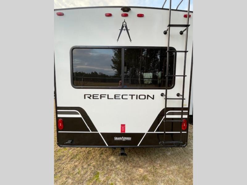With any Reflection 150 Series fifth wheel by Grand Design, there is more available payload capacity and a broader range of half-ton trucks capable of towing this fifth wheel, and no slider hitch is needed thanks to the 90-degree turning radius which makes them short bed friendly and easier to tow. The mandatory Ultimate Power package provides a "One-Touch" automatic leveling system and a detachable power cord with LED light for easy setup, plus motion sensor pass-through lighting and entry lighting, and the Tire Linc TPMS will help you stay safe on the road. The interior offers residential luxury from the cabinetry and premium Congoleum flooring, to the booth dinette and residential-style window treatment. Make your refined decision today!