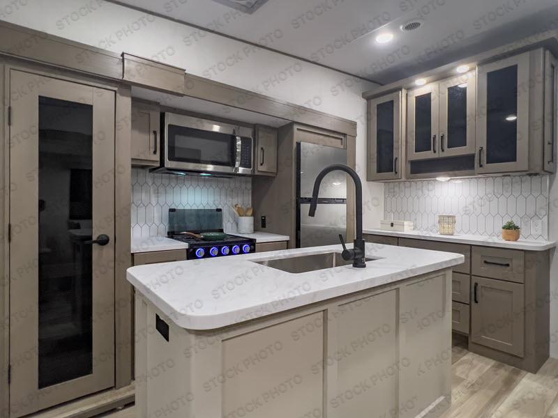 Rear Living, Kitchen Island, Queen Bed, Solar