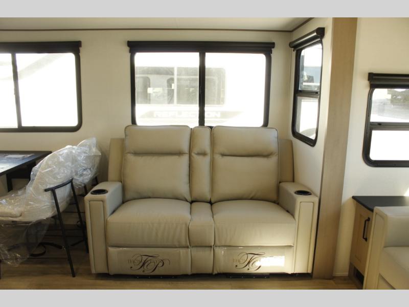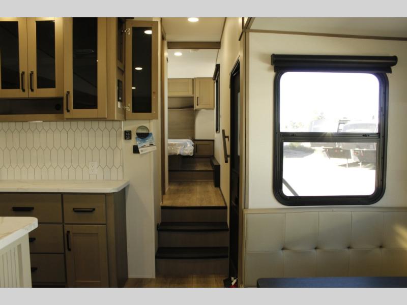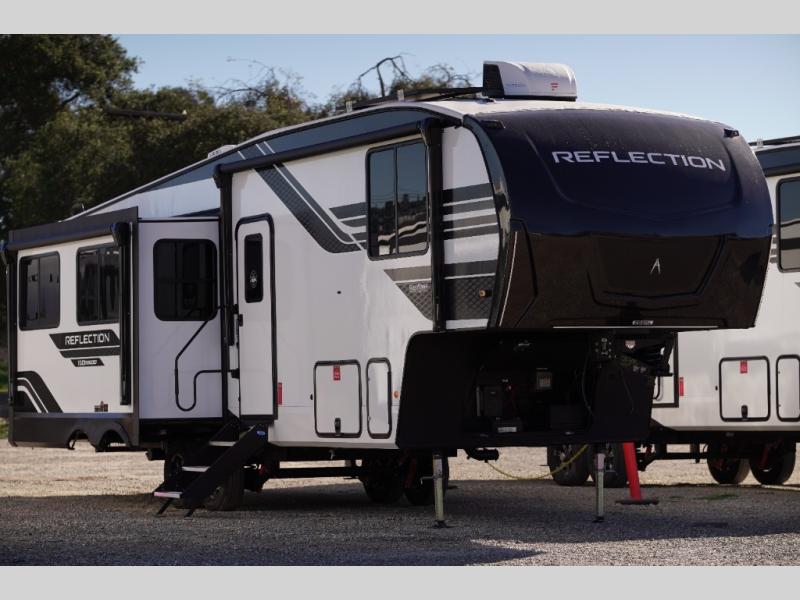 With any Reflection 150 Series fifth wheel by Grand Design, there is more available payload capacity and a broader range of half-ton trucks capable of towing this fifth wheel, and no slider hitch is needed thanks to the 90-degree turning radius which makes them short bed friendly and easier to tow. The mandatory Ultimate Power package provides a "One-Touch" automatic leveling system and a detachable power cord with LED light for easy setup, plus motion sensor pass-through lighting and entry lighting, and the Tire Linc TPMS will help you stay safe on the road. The interior offers residential cabinetry and premium Congoleum flooring, to the booth dinette and residential-style window treatment. Make your refined decision today!