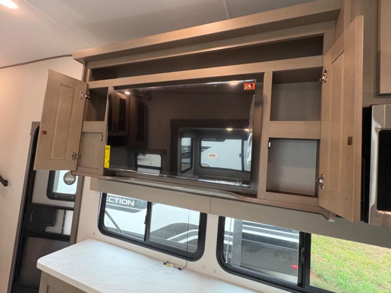 With any Reflection 150 Series fifth wheel by Grand Design, there is more available payload capacity and a broader range of half-ton trucks capable of towing this fifth wheel, and no slider hitch is needed thanks to the 90-degree turning radius which makes them short bed friendly and easier to tow. The mandatory Ultimate Power package provides a "One-Touch" automatic leveling system and a detachable power cord with LED light for easy setup, plus motion sensor pass-through lighting and entry lighting, and the Tire Linc TPMS will help you stay safe on the road. The interior offers residential luxury from the cabinetry and premium Congoleum flooring, to the booth dinette and residential-style window treatment. Make your refined decision today!
