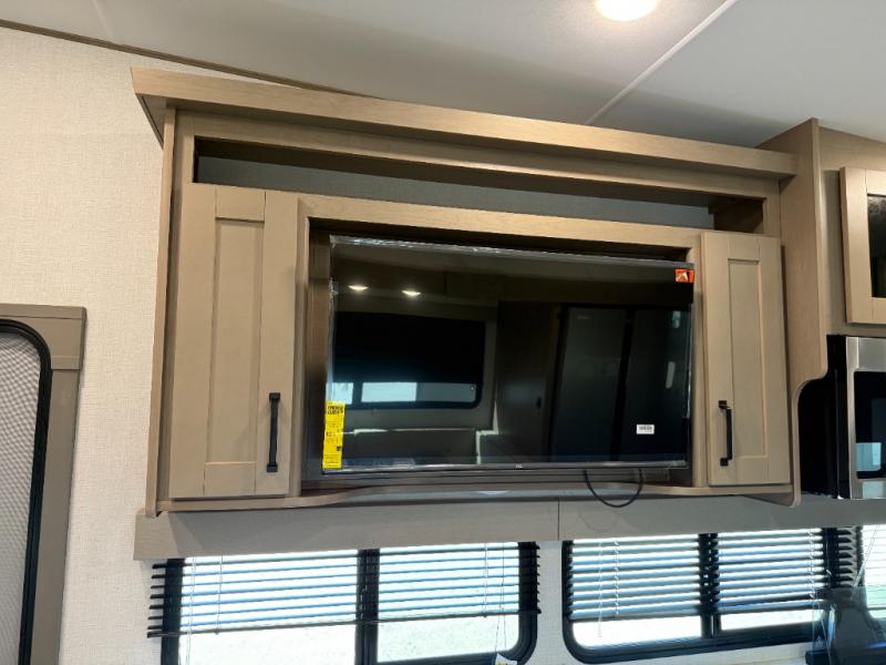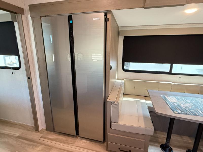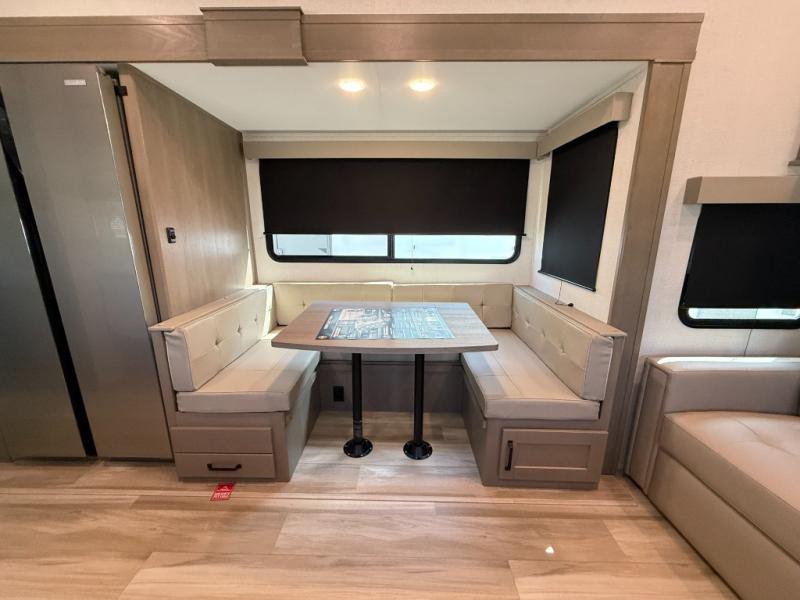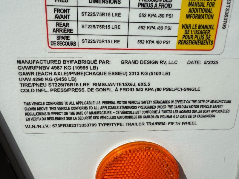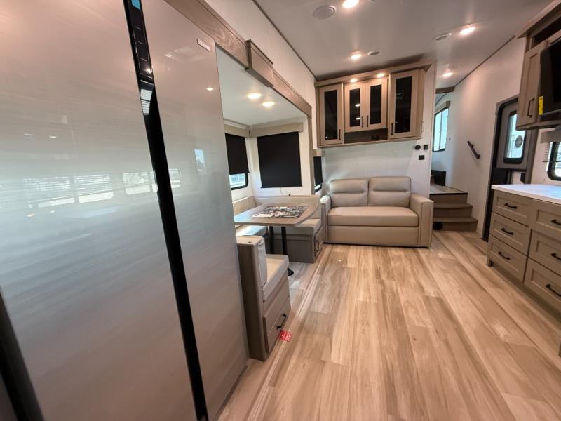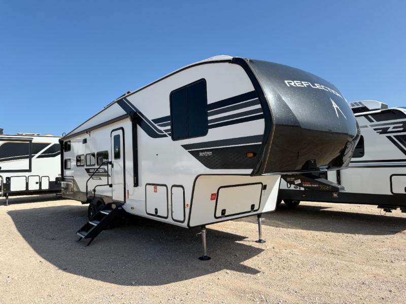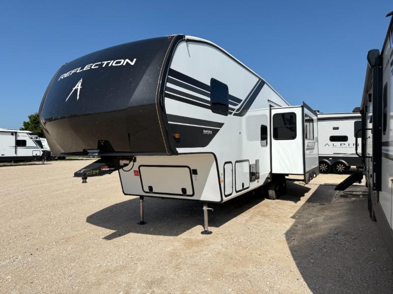 With any Reflection 150 Series fifth wheel by Grand Design, there is more available payload capacity and a broader range of half-ton trucks capable of towing this fifth wheel, and no slider hitch is needed thanks to the 90-degree turning radius which makes them short bed friendly and easier to tow. The mandatory Ultimate Power package provides a "One-Touch" automatic leveling system and a detachable power cord with LED light for easy setup, plus motion sensor pass-through lighting and entry lighting, and the Tire Linc TPMS will help you stay safe on the road. The interior offers residential luxury from the cabinetry and premium Congoleum flooring, to the booth dinette and residential-style window treatment. Make your refined decision today!