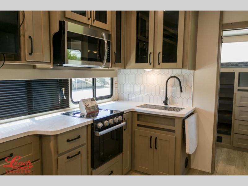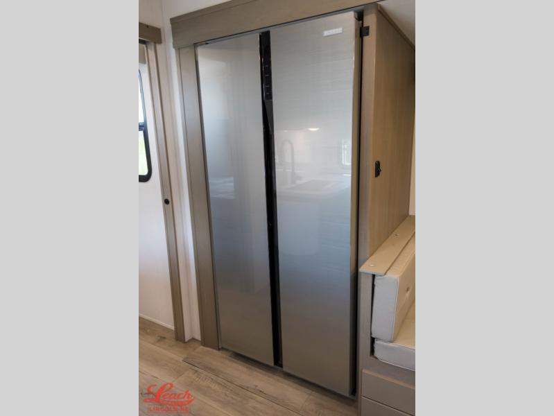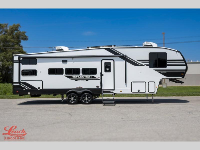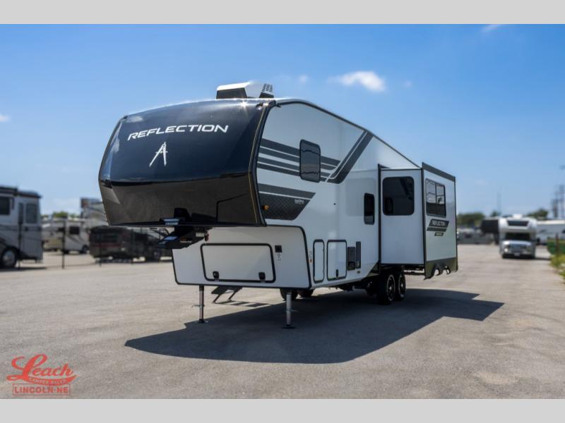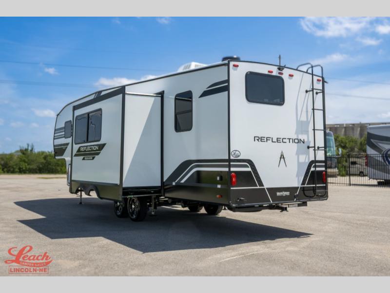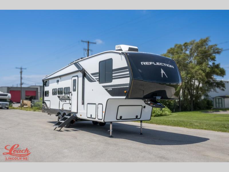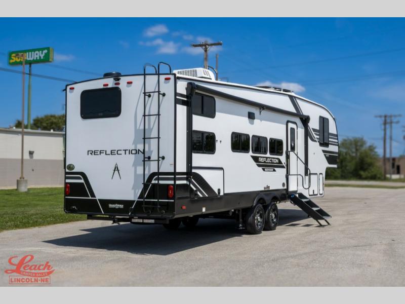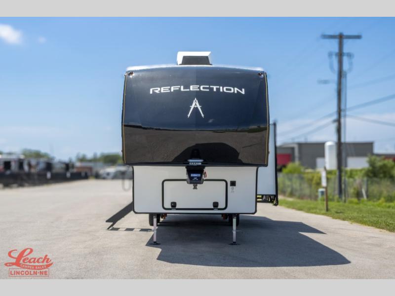 With any Reflection 150 Series fifth wheel by Grand Design, there is more available payload capacity and a broader range of half-ton trucks capable of towing this fifth wheel, and no slider hitch is needed thanks to the 90-degree turning radius which makes them short bed friendly and easier to tow. The mandatory Ultimate Power package provides a "One-Touch" automatic leveling system and a detachable power cord with LED light for easy setup, plus motion sensor pass-through lighting and entry lighting, and the Tire Linc TPMS will help you stay safe on the road. The interior offers residential luxury from the cabinetry and premium Congoleum flooring, to the booth dinette and residential-style window treatment. Make your refined decision today!