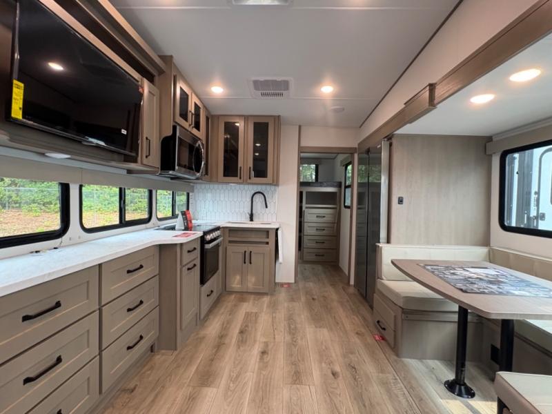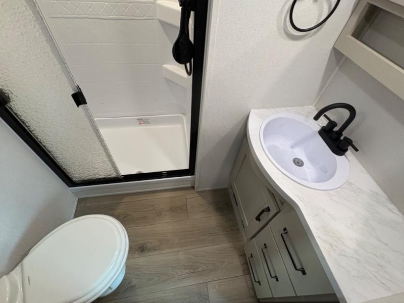With any Reflection 150 Series fifth wheel by Grand Design, there is more available payload capacity and a broader range of half-ton trucks capable of towing this fifth wheel, and no slider hitch is needed thanks to the 90-degree turning radius which makes them short bed friendly and easier to tow. The mandatory Ultimate Power package provides a "One-Touch" automatic leveling system and a detachable power cord with LED light for easy setup, plus motion sensor pass-through lighting and entry lighting, and the Tire Linc TPMS will help you stay safe on the road. The interior offers residential luxury from the cabinetry and premium Congoleum flooring, to the booth dinette and residential-style window treatment. Make your refined decision today!