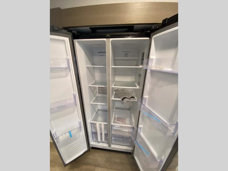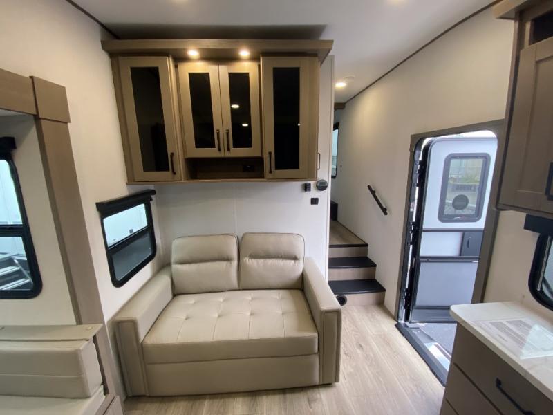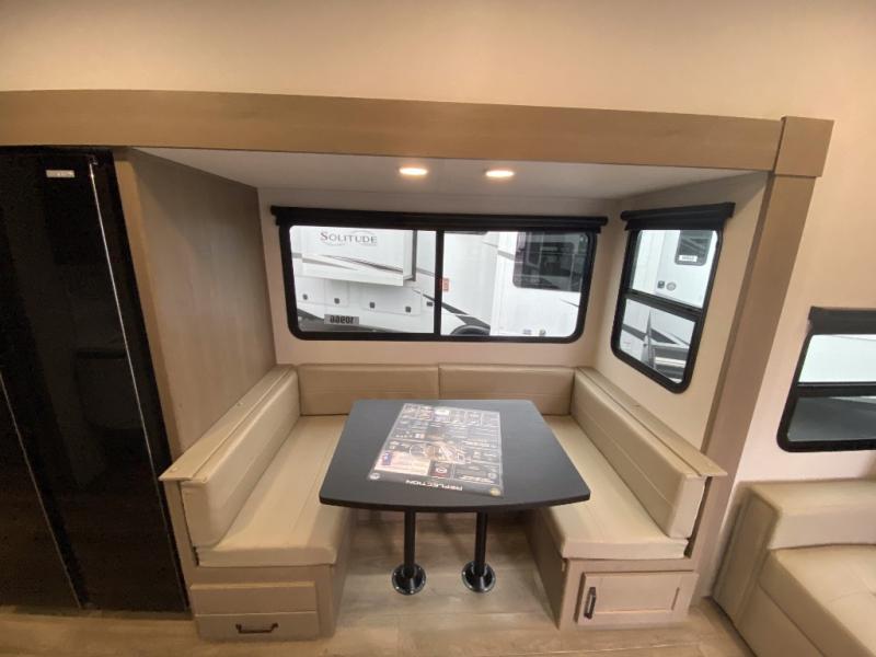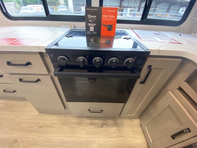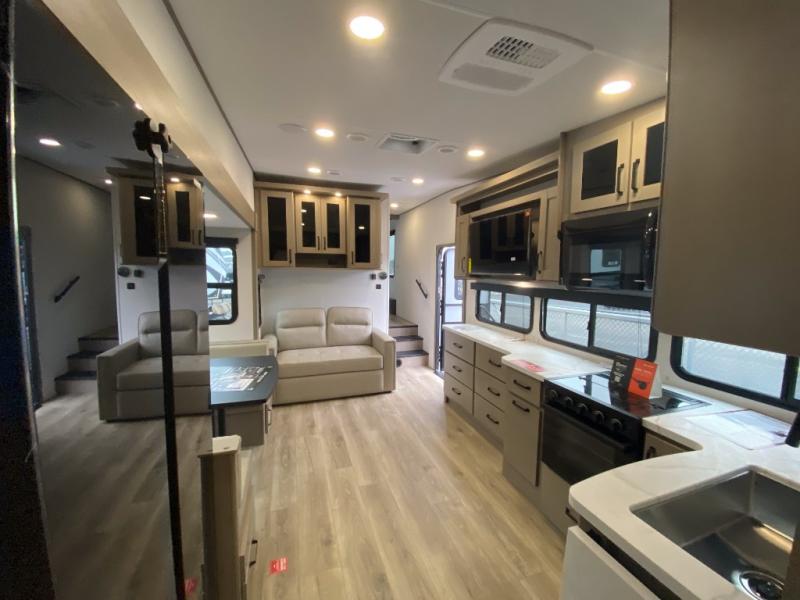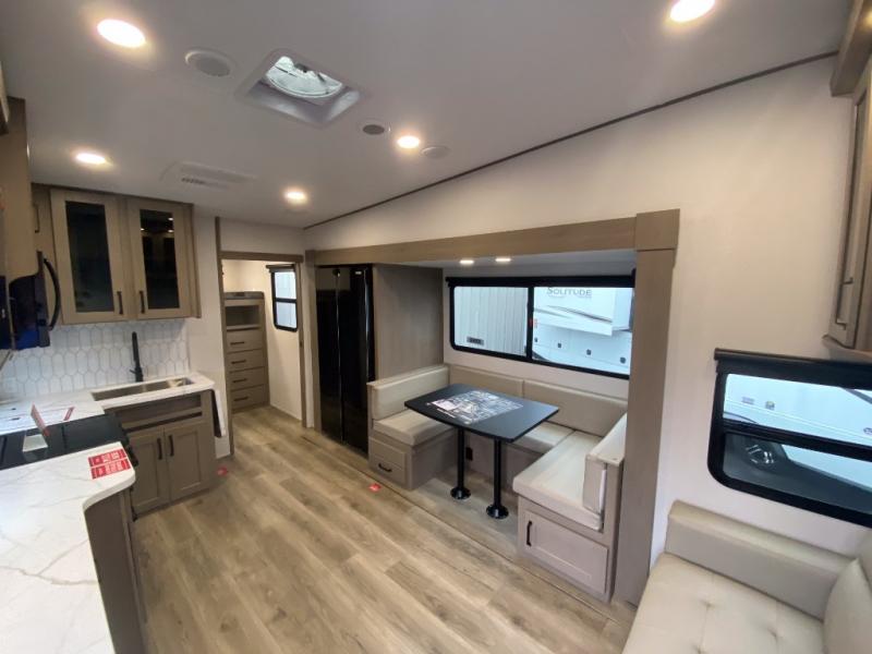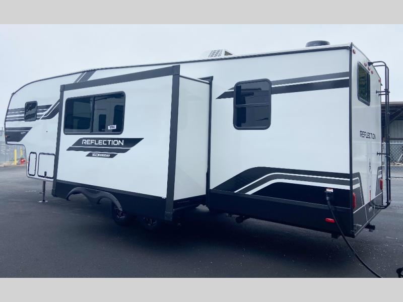 With any Reflection 150 Series fifth wheel by Grand Design, there is more available payload capacity and a broader range of half-ton trucks capable of towing this fifth wheel, and no slider hitch is needed thanks to the 90-degree turning radius which makes them short bed friendly and easier to tow. The mandatory Ultimate Power package provides a "One-Touch" automatic leveling system and a detachable power cord with LED light for easy setup, plus motion sensor pass-through lighting and entry lighting, and the Tire Linc TPMS will help you stay safe on the road. The interior offers residential luxury from the cabinetry and premium Congoleum flooring, to the booth dinette and residential-style window treatment. Make your refined decision today!