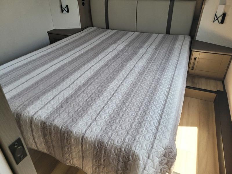 With any Reflection 150 Series fifth wheel by Grand Design, there is more available payload capacity and a broader range of half-ton trucks capable of towing this fifth wheel, and no slider hitch is needed thanks to the 90-degree turning radius which makes them short bed friendly and easier to tow. The mandatory Ultimate Power package provides a "One-Touch" automatic leveling system and a detachable power cord with LED light for easy setup, plus motion sensor pass-through lighting and entry lighting, and the Tire Linc TPMS will help you stay safe on the road. The interior offers residential luxury from the cabinetry and premium Congoleum flooring, to the booth dinette and residential-style window treatment. Make your refined decision today!