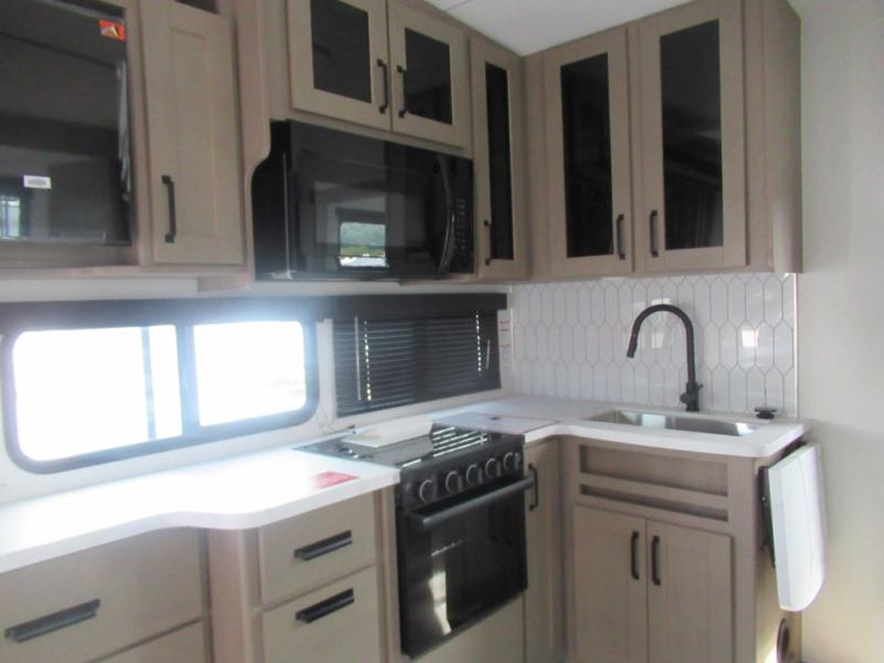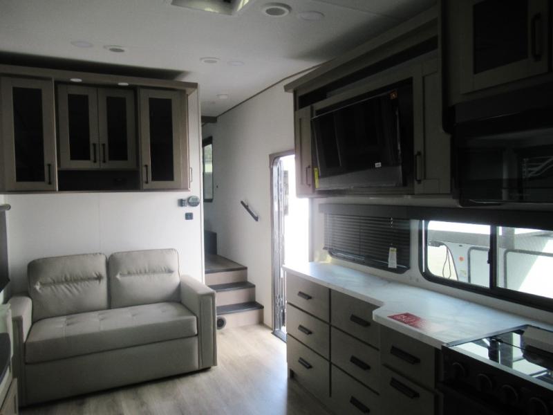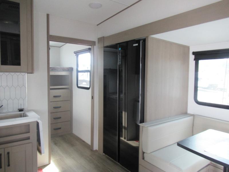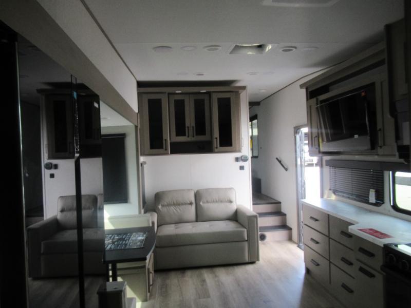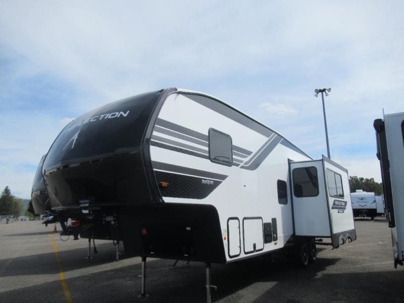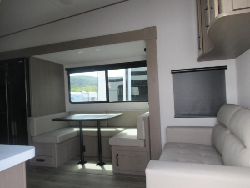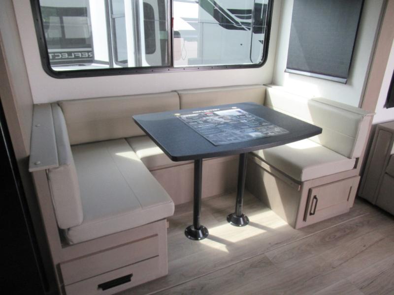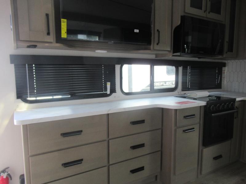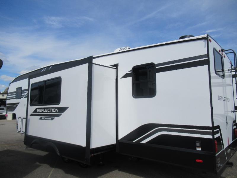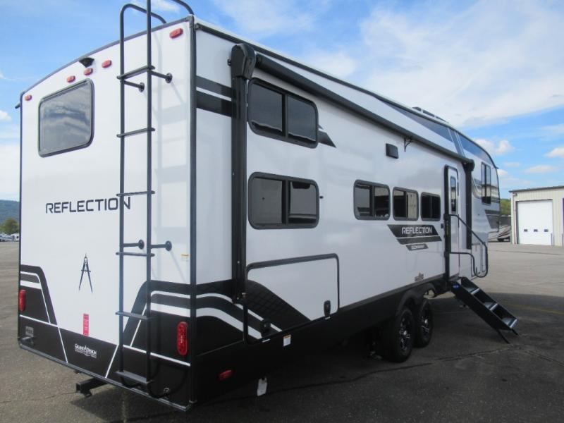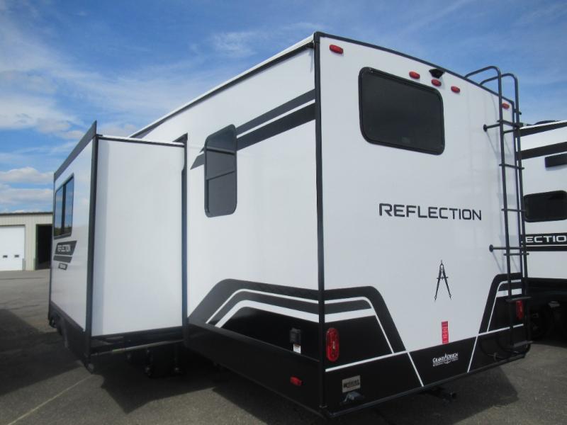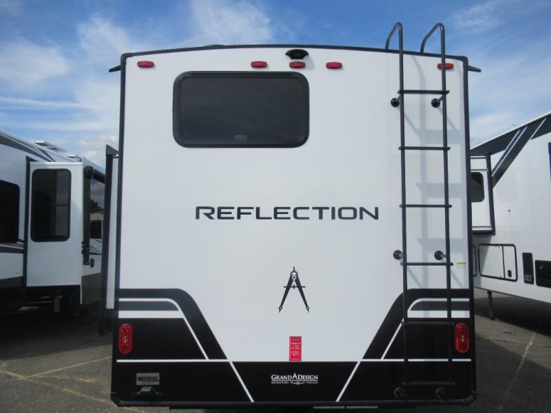 With any Reflection 150 Series fifth wheel by Grand Design, there is more available payload capacity and a broader range of half-ton trucks capable of towing this fifth wheel, and no slider hitch is needed thanks to the 90-degree turning radius which makes them short bed friendly and easier to tow. The mandatory Ultimate Power package provides a "One-Touch" automatic leveling system and a detachable power cord with LED light for easy setup, plus motion sensor pass-through lighting and entry lighting, and the Tire Linc TPMS will help you stay safe on the road. The interior offers residential luxury from the cabinetry and premium Congoleum flooring, to the booth dinette and residential-style window treatment. Make your refined decision today!