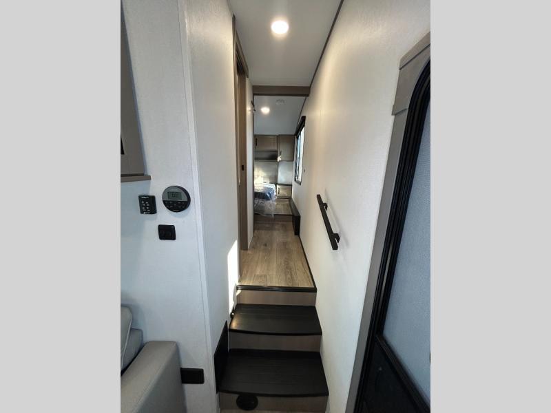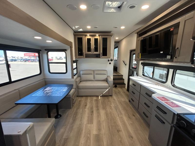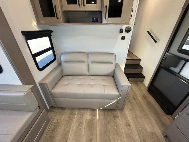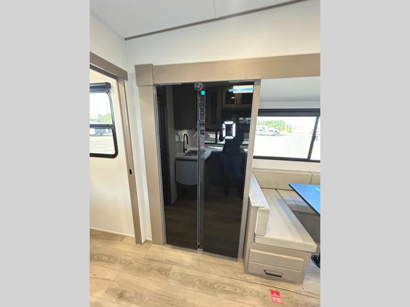 With any Reflection 150 Series fifth wheel by Grand Design, there is more available payload capacity and a broader range of half-ton trucks capable of towing this fifth wheel, and no slider hitch is needed thanks to the 90-degree turning radius which makes them short bed friendly and easier to tow. The mandatory Ultimate Power package provides a "One-Touch" automatic leveling system and a detachable power cord with LED light for easy setup, plus motion sensor pass-through lighting and entry lighting, and the Tire Linc TPMS will help you stay safe on the road. The interior offers residential luxury from the cabinetry and premium Congoleum flooring, to the booth dinette and residential-style window treatment. Make your refined decision today!