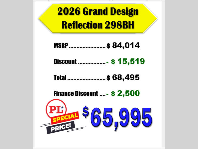 New 2026 Grand Design Reflection 150 Series 298BH Fifth Wheel