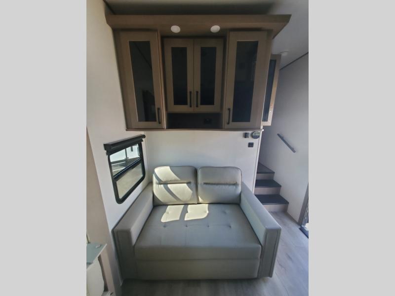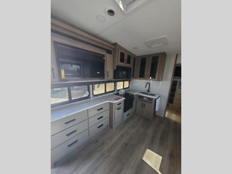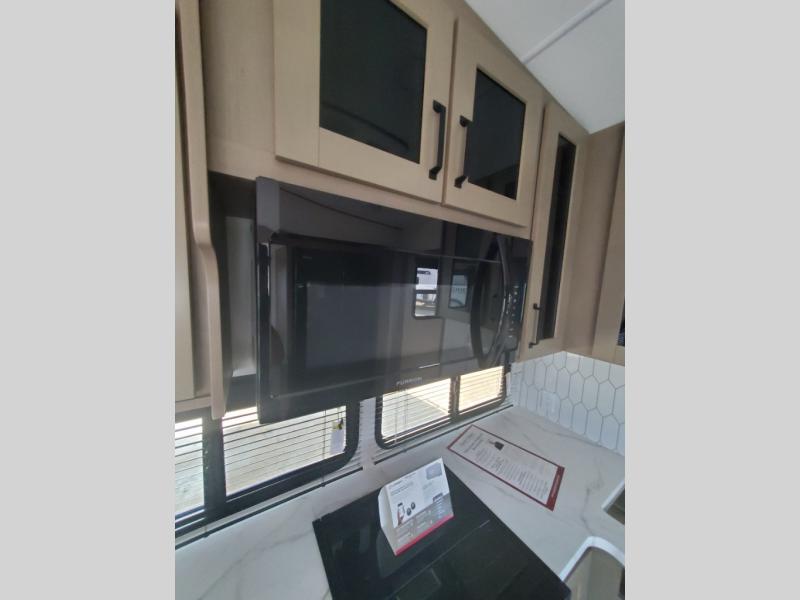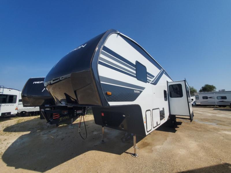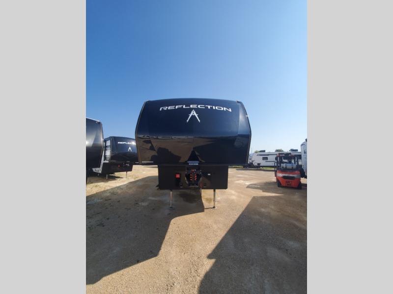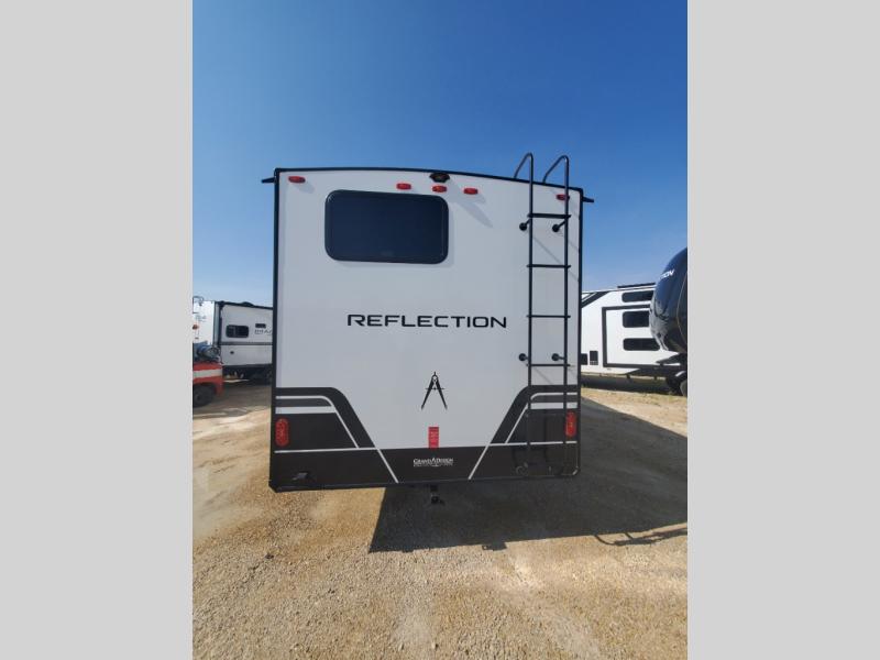 With any Reflection 150 Series fifth wheel by Grand Design, there is more available payload capacity and a broader range of half-ton trucks capable of towing this fifth wheel, and no slider hitch is needed thanks to the 90-degree turning radius which makes them short bed friendly and easier to tow. The mandatory Ultimate Power package provides a "One-Touch" automatic leveling system and a detachable power cord with LED light for easy setup, plus motion sensor pass-through lighting and entry lighting, and the Tire Linc TPMS will help you stay safe on the road. The interior offers residential luxury from the cabinetry and premium Congoleum flooring, to the booth dinette and residential-style window treatment. Make your refined decision today!