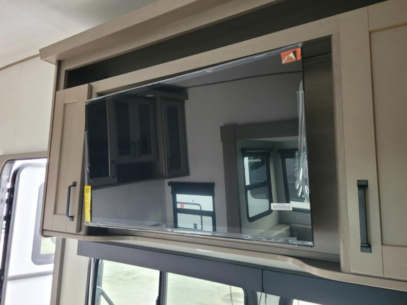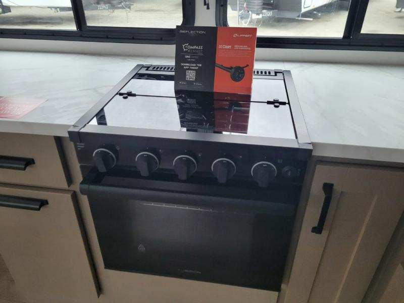 With any Reflection 150 Series fifth wheel by Grand Design, there is more available payload capacity and a broader range of half-ton trucks capable of towing this fifth wheel, and no slider hitch is needed thanks to the 90-degree turning radius which makes them short bed friendly and easier to tow. The mandatory Ultimate Power package provides a "One-Touch" automatic leveling system and a detachable power cord with LED light for easy setup, plus motion sensor pass-through lighting and entry lighting, and the Tire Linc TPMS will help you stay safe on the road. The interior offers residential luxury from the cabinetry and premium Congoleum flooring, to the booth dinette and residential-style window treatment. Make your refined decision today!