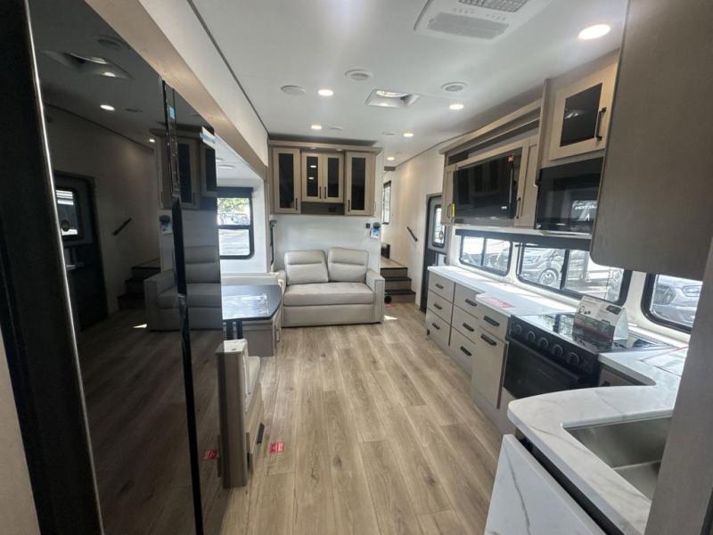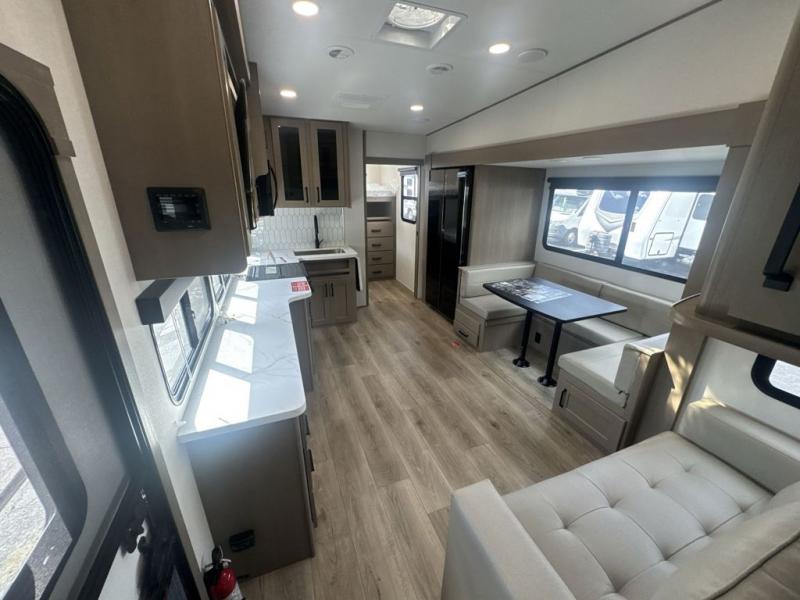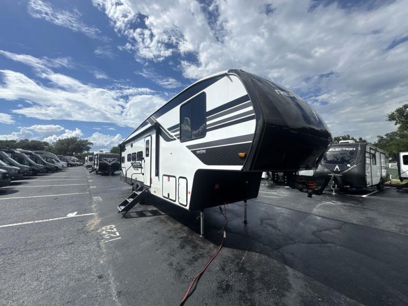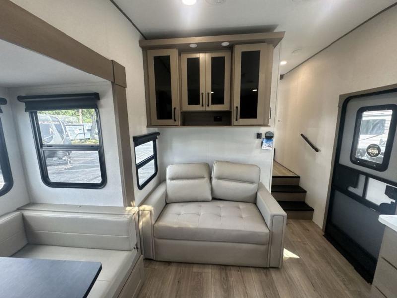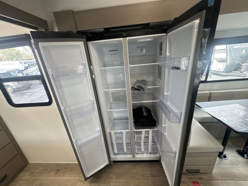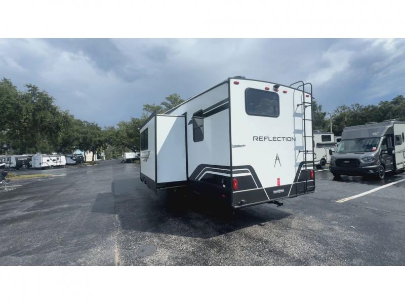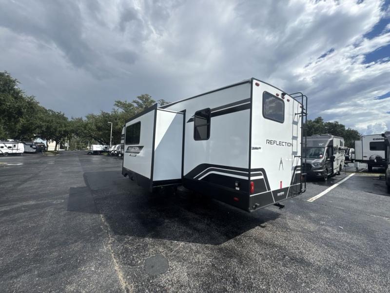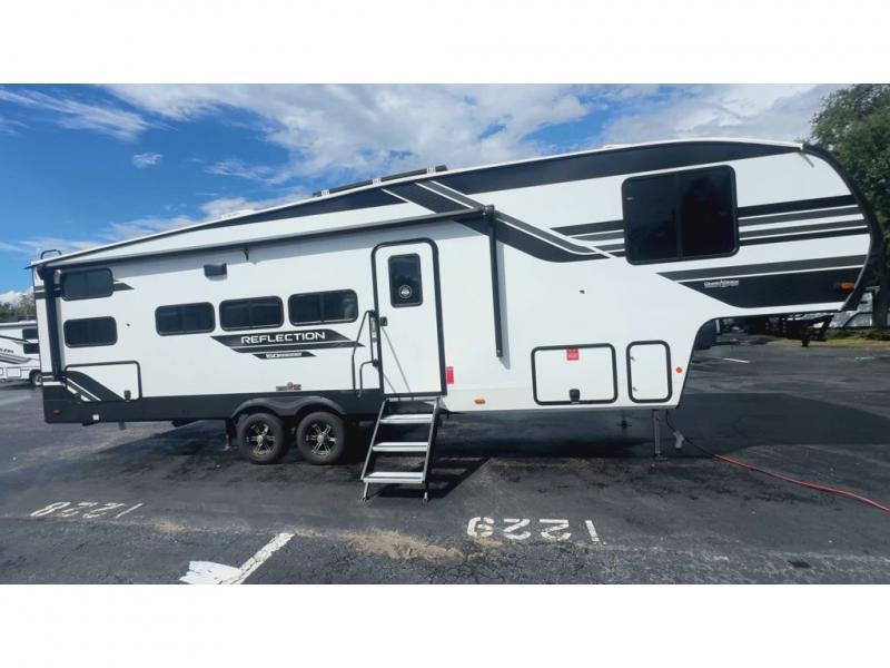 With any Reflection 150 Series fifth wheel by Grand Design, there is more available payload capacity and a broader range of half-ton trucks capable of towing this fifth wheel, and no slider hitch is needed thanks to the 90-degree turning radius which makes them short bed friendly and easier to tow. The mandatory Ultimate Power package provides a "One-Touch" automatic leveling system and a detachable power cord with LED light for easy setup, plus motion sensor pass-through lighting and entry lighting, and the Tire Linc TPMS will help you stay safe on the road. The interior offers residential cabinetry and premium Congoleum flooring, to the booth dinette and residential-style window treatment. Make your refined decision today!