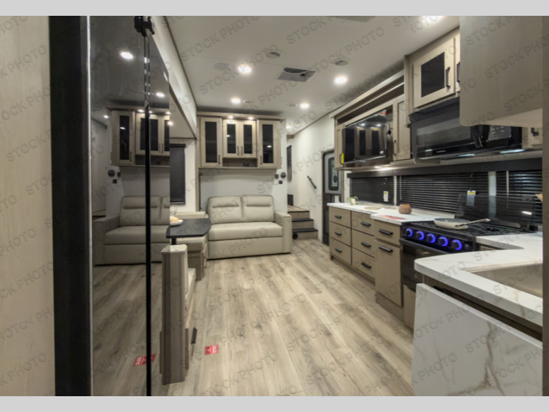 With any Reflection 150 Series fifth wheel by Grand Design, there is more available payload capacity and a broader range of half-ton trucks capable of towing this fifth wheel, and no slider hitch is needed thanks to the 90-degree turning radius which makes them short bed friendly and easier to tow. The mandatory Ultimate Power package provides a "One-Touch" automatic leveling system and a detachable power cord with LED light for easy setup, plus motion sensor pass-through lighting and entry lighting, and the Tire Linc TPMS will help you stay safe on the road. The interior offers residential cabinetry and premium Congoleum flooring, to the booth dinette and residential-style window treatment. Make your refined decision today!
