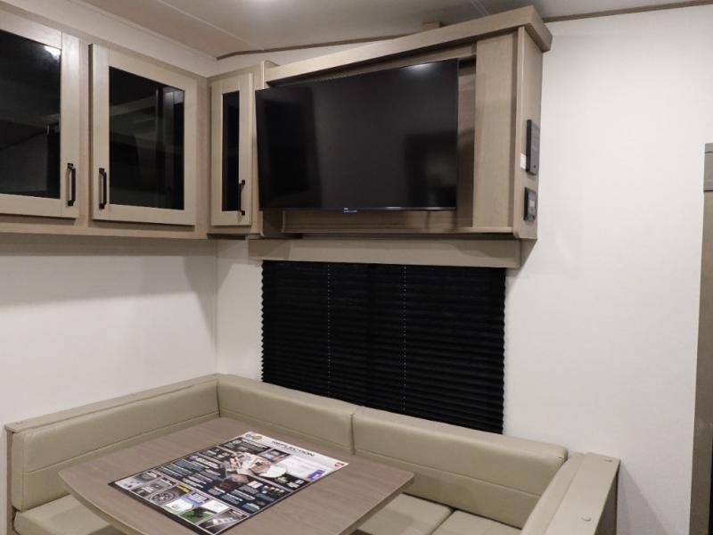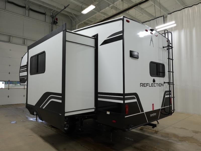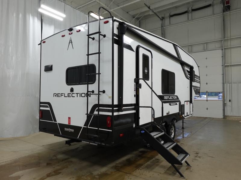 Each Reflection 100 Series fifth wheel by Grand Design is affordable and packed with luxury for unforgettable camping memories! The MorRyde CRE3000 suspension system and Goodyear Endurance tires will provide smooth towing from home to campground. And the solar package with a 180W solar panel, 60 Amp charge controller and 12V refrigerator will allow you to camp for longer periods of time and in more locations! A heated and enclosed underbelly with circulating heat is included in the Arctic 4-Seasons Protection Package, along with a double insulated roof and front cap, and thermofoil insulation under the holding tanks so you can camp all year long if you choose. You will appreciate having an on-demand water heater for hot showers after exploring, and the universal all-in-one docking station will let you monitor your RVs tanks levels and functions with ease. These models also include many luxurious interior features, such as premium Congoleum flooring, pleated shades, residential cabinetry, and matte black fixtures and hardware. Don't let the Reflection 100 Series fifth wheels pass you by!