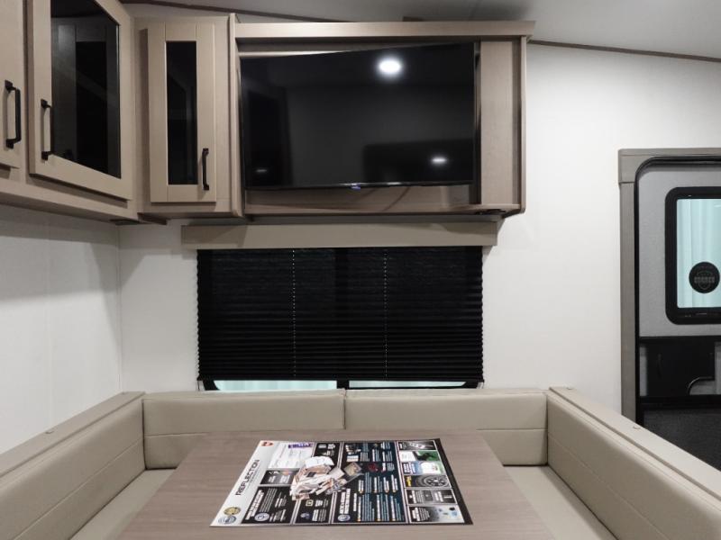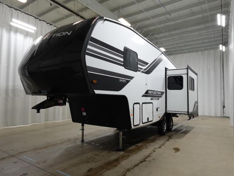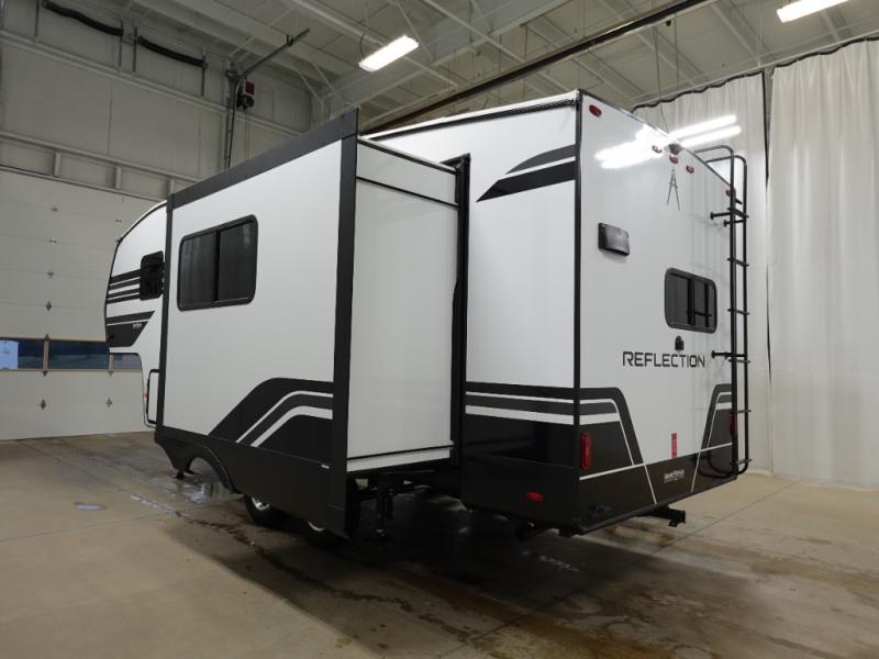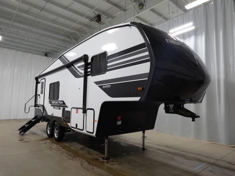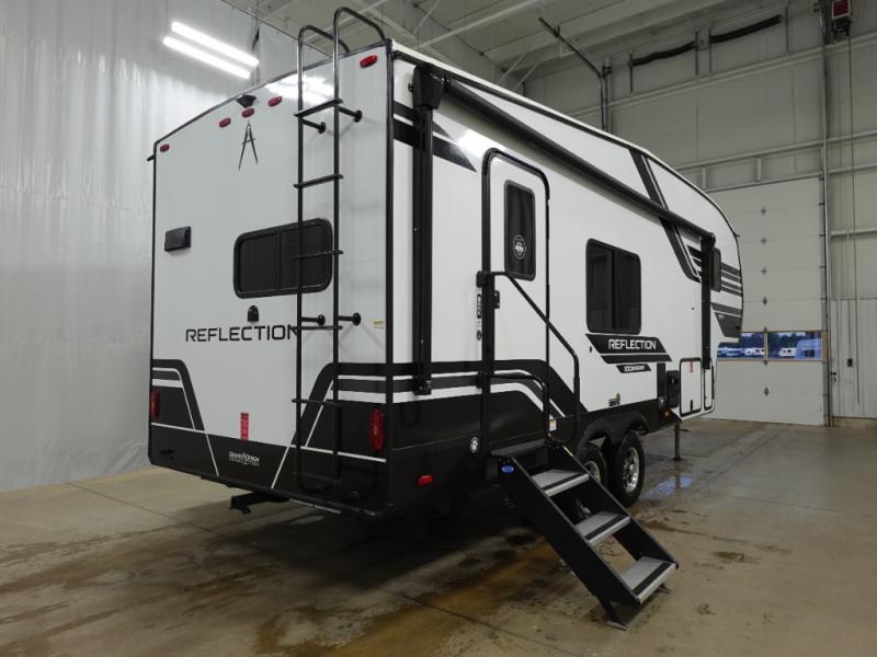 Each Reflection 100 Series fifth wheel by Grand Design is affordable and packed with luxury for unforgettable camping memories! The MorRyde CRE3000 suspension system and Goodyear Endurance tires will provide smooth towing from home to campground. And the solar package with a 180W solar panel, 60 Amp charge controller and 12V refrigerator will allow you to camp for longer periods of time and in more locations! A heated and enclosed underbelly with circulating heat is included in the Arctic 4-Seasons Protection Package, along with a double insulated roof and front cap, and thermofoil insulation under the holding tanks so you can camp all year long if you choose. You will appreciate having an on-demand water heater for hot showers after exploring, and the universal all-in-one docking station will let you monitor your RVs tanks levels and functions with ease. These models also include many luxurious interior features, such as premium Congoleum flooring, pleated shades, residential cabinetry, and matte black fixtures and hardware. Don't let the Reflection 100 Series fifth wheels pass you by!