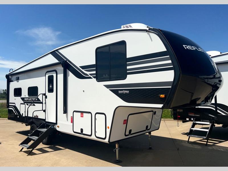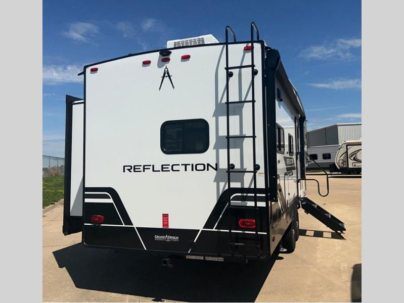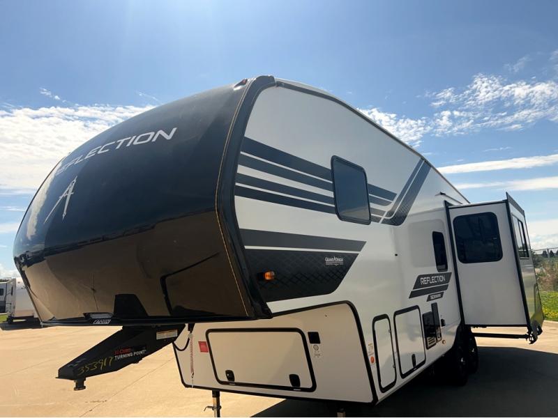 With any Reflection 150 Series fifth wheel by Grand Design, there is more available payload capacity and a broader range of half-ton trucks capable of towing this fifth wheel, and no slider hitch is needed thanks to the 90-degree turning radius which makes them short bed friendly and easier to tow. The mandatory Ultimate Power package provides a "One-Touch" automatic leveling system and a detachable power cord with LED light for easy setup, plus motion sensor pass-through lighting and entry lighting, and the Tire Linc TPMS will help you stay safe on the road. The interior offers residential luxury from the cabinetry and premium Congoleum flooring, to the booth dinette and residential-style window treatment. Make your refined decision today!