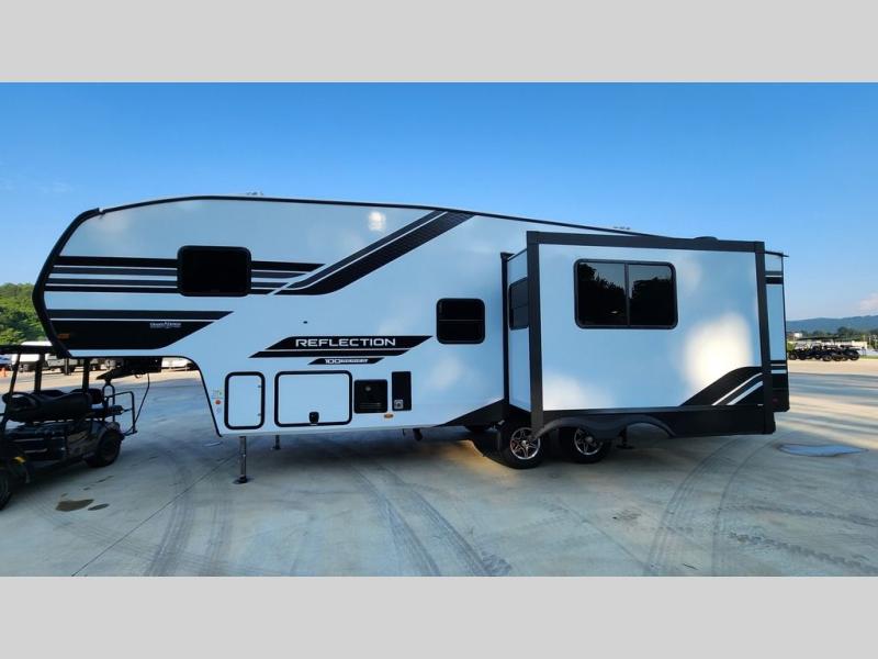 Each Reflection 100 Series fifth wheel by Grand Design is affordable and packed with luxury for unforgettable camping memories! The MorRyde CRE3000 suspension system and Goodyear Endurance tires will provide smooth towing from home to campground. And the solar package with a 180W solar panel, 60 Amp charge controller and 12V refrigerator will allow you to camp for longer periods of time and in more locations! A heated and enclosed underbelly with circulating heat is included in the Arctic 4-Seasons Protection Package, along with a double insulated roof and front cap, and thermofoil insulation under the holding tanks so you can camp all year long if you choose. You will appreciate having an on-demand water heater for hot showers after exploring, and the universal all-in-one docking station will let you monitor your RVs tanks levels and functions with ease. These models also include many luxurious interior features, such as premium Congoleum flooring, pleated shades, residential cabinetry, and matte black fixtures and hardware. Don't let the Reflection 100 Series fifth wheels pass you by!
