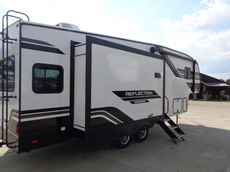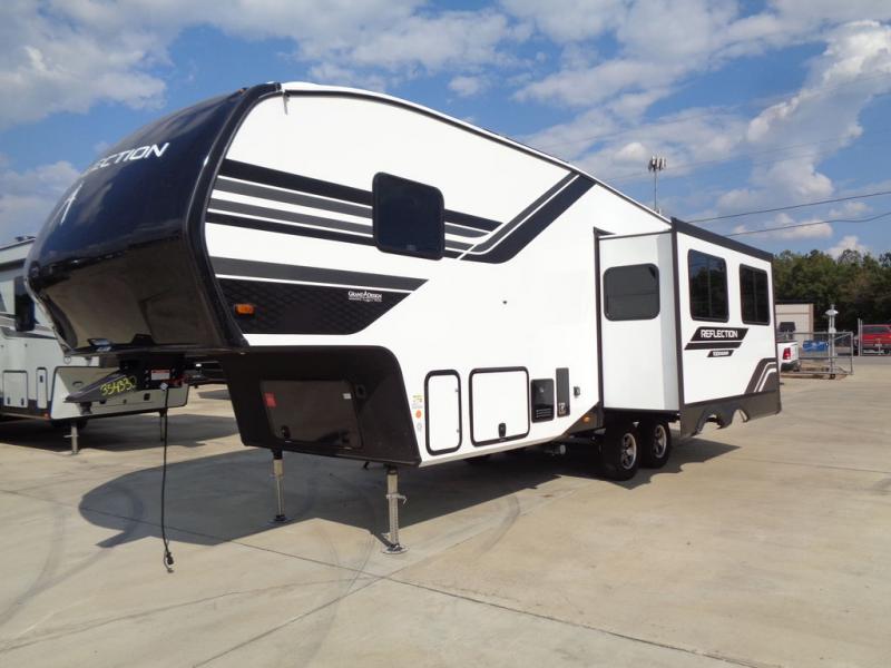 Each Reflection 100 Series fifth wheel by Grand Design is affordable and packed with luxury for unforgettable camping memories! The MorRyde CRE3000 suspension system and Goodyear Endurance tires will provide smooth towing from home to campground. And the solar package with a 180W solar panel, 60 Amp charge controller and 12V refrigerator will allow you to camp for longer periods of time and in more locations! A heated and enclosed underbelly with circulating heat is included in the Arctic 4-Seasons Protection Package, along with a double insulated roof and front cap, and thermofoil insulation under the holding tanks so you can camp all year long if you choose. You will appreciate having an on-demand water heater for hot showers after exploring, and the universal all-in-one docking station will let you monitor your RVs tanks levels and functions with ease. These models also include many luxurious interior features, such as premium Congoleum flooring, pleated shades, residential cabinetry, and matte black fixtures and hardware. Don't let the Reflection 100 Series fifth wheels pass you by!