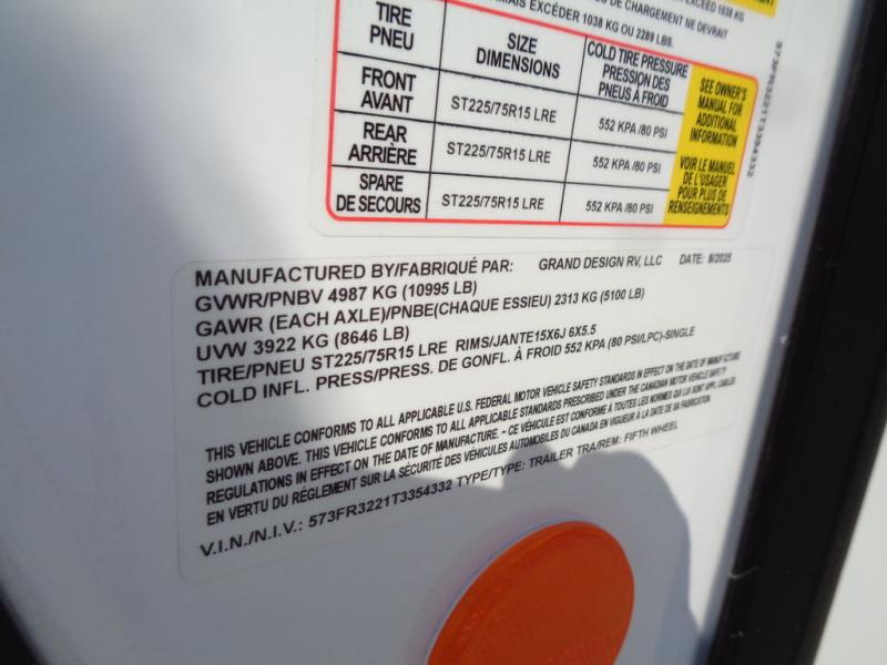 COLLINS INTERIOR, GOODYEAR TIRES, ABS AXLE ASSEMBLY W/SWAY CONTROL, INTERNET READY (ROUTER PREP & STARLINK PREP), SAFERIDE RV ROADSIDE ASSISTANCE, SWIVEL DINETTE W/2 CHAIRS & STORAGE OTTOMAN, 8K DUCTED 2ND A/C