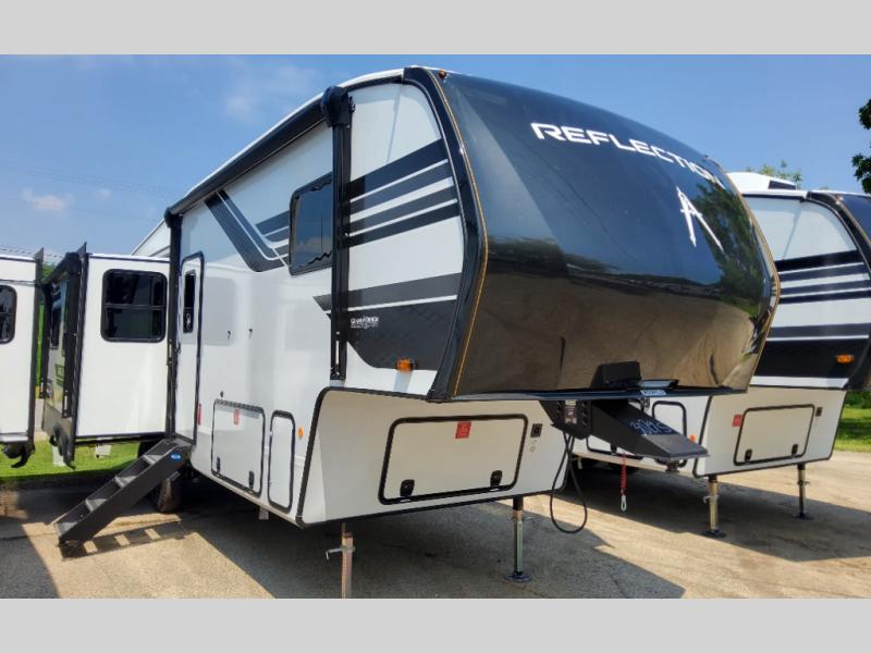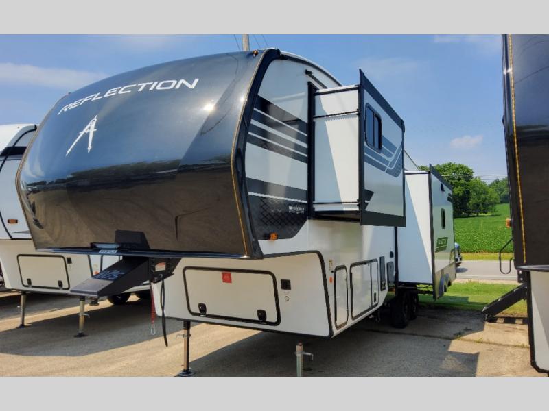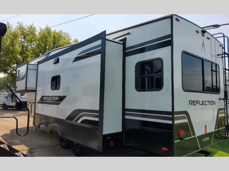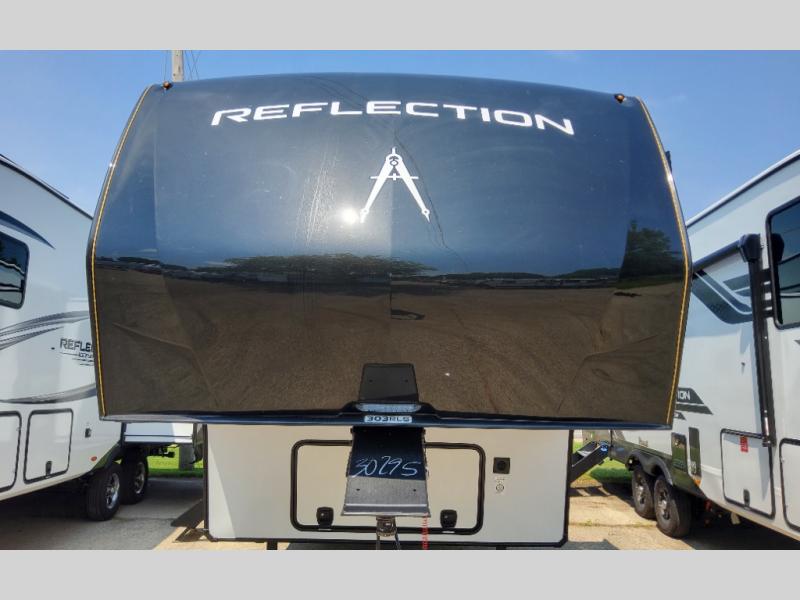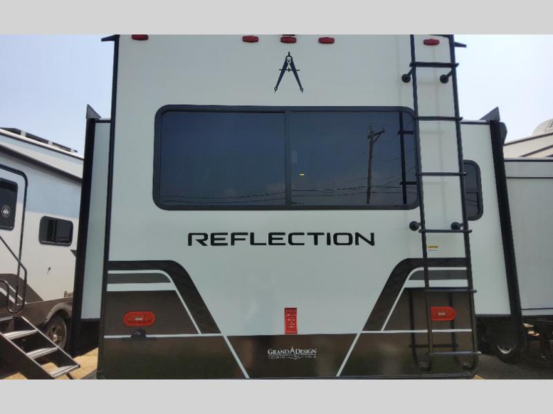 With any Reflection fifth wheel by Grand Design, you will have a solar panel for off-grid camping and a 60 amp charge controller and inverter prep, a Universal All-In-One docking station, unobstructed pass-through storage, and Goodyear Endurance tires. Each is constructed of gel coat exterior sidewalls, residential 5" truss rafters, walk-on roof decking, a fiberglass and radiant foil roof and front cap insulation plus laminated aluminum framed side walls, roof and end walls in slide rooms. Head inside to enjoy residential hardwood cabinet doors, premium Congoleum flooring, a spacious shower with a glass door, and many more comforts!