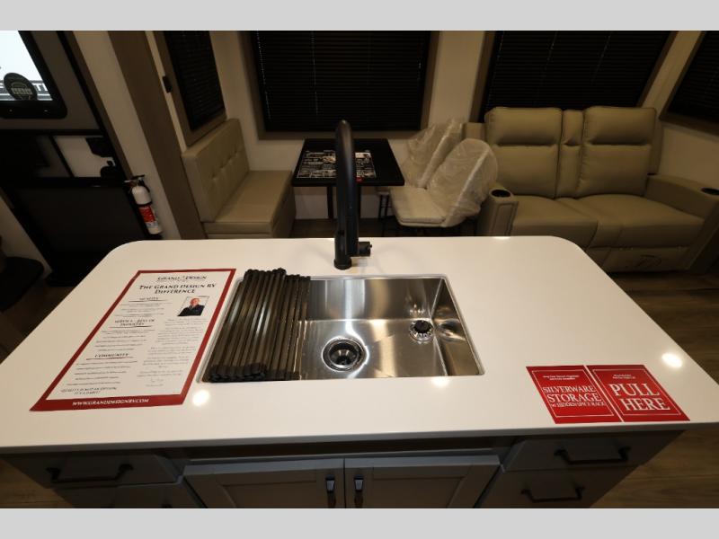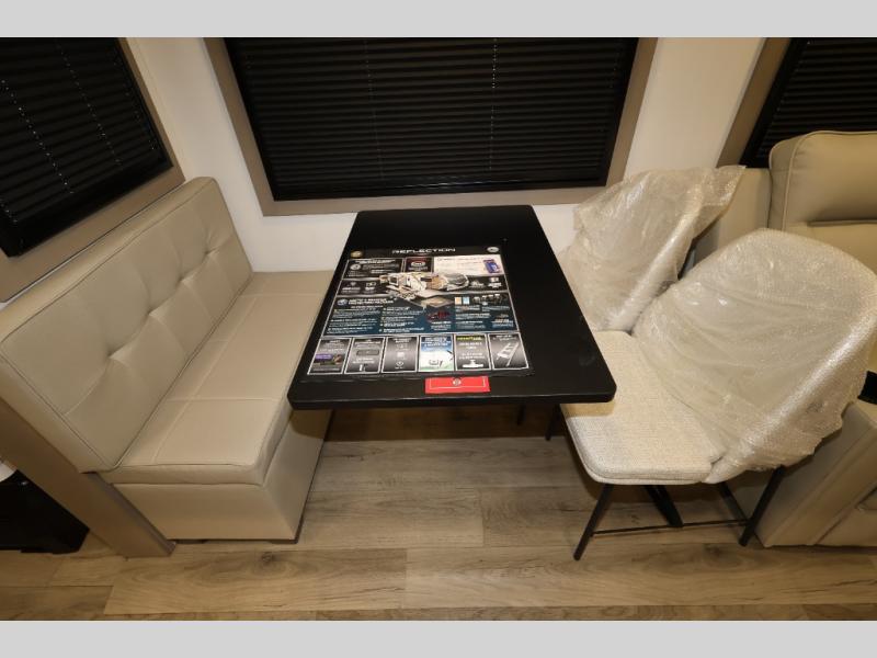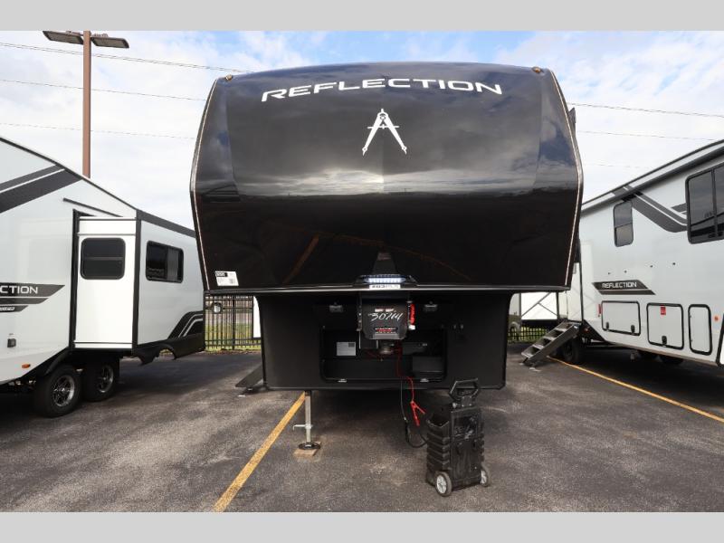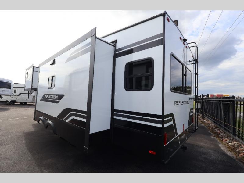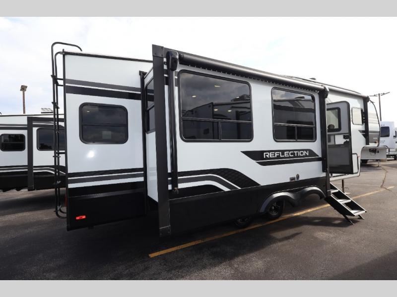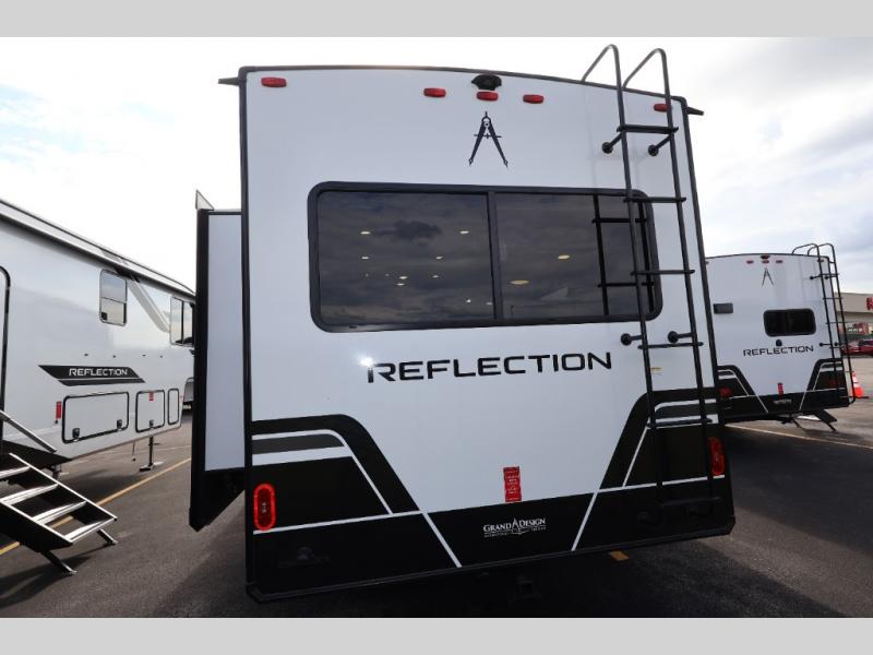 With any Reflection fifth wheel by Grand Design, you will have a solar panel for off-grid camping and a 60 amp charge controller and inverter prep, a Universal All-In-One docking station, unobstructed pass-through storage, and Goodyear Endurance tires. Each is constructed of gel coat exterior sidewalls, residential 5" truss rafters, walk-on roof decking, a fiberglass and radiant foil roof and front cap insulation plus laminated aluminum framed side walls, roof and end walls in slide rooms. Head inside to enjoy residential hardwood cabinet doors, premium Congoleum flooring, a spacious shower with a glass door, and many more comforts!