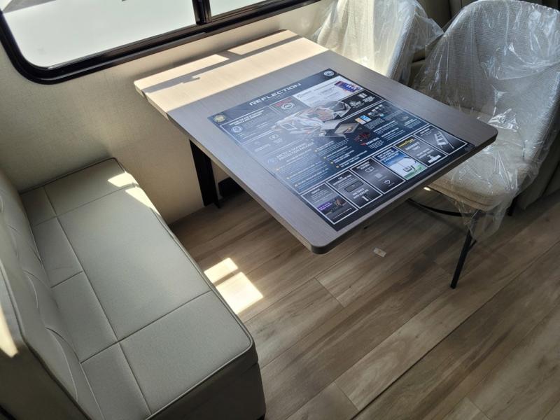 With any Reflection fifth wheel by Grand Design, you will have a solar panel for off-grid camping and a 60 amp charge controller and inverter prep, a Universal All-In-One docking station, unobstructed pass-through storage, and Goodyear Endurance tires. Each is constructed of gel coat exterior sidewalls, residential 5" truss rafters, walk-on roof decking, a fiberglass and radiant foil roof and front cap insulation plus laminated aluminum framed side walls, roof and end walls in slide rooms. Head inside to enjoy residential hardwood cabinet doors, premium Congoleum flooring, a spacious shower with a glass door, and many more comforts!