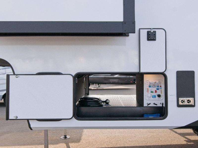 Relax under two electric awnings that provide shade and shelter while you socialize or unwind. The pass-through storage compartment makes it easy to stow camping chairs, gear, and more.