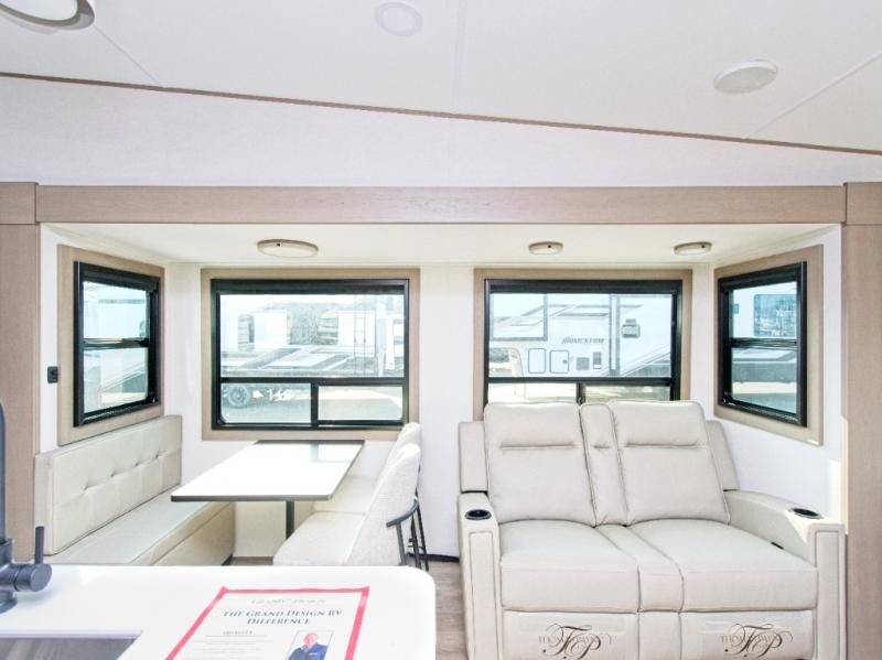 Whether you're traveling for work or leisure, the Reflection 303RLS by Grand Design offers the perfect combination of residential comfort and road-ready convenience. This fifth wheel features a spacious rear living area with a tri-fold sofa for guests, theater seating directly across from a 40" LED HDTV and electric fireplace, creating a cozy space to relax after a day of adventure.