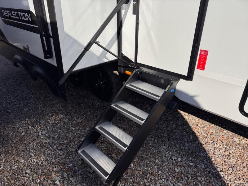With any Reflection fifth wheel by Grand Design, you will have a solar panel for off-grid camping and a 60 amp charge controller and inverter prep, a Universal All-In-One docking station, unobstructed pass-through storage, and Goodyear Endurance tires. Each is constructed of gel coat exterior sidewalls, residential 5" truss rafters, walk-on roof decking, a fiberglass and radiant foil roof and front cap insulation plus laminated aluminum framed side walls, roof and end walls in slide rooms. Head inside to enjoy residential hardwood cabinet doors, premium Congoleum flooring, a spacious shower with a glass door, and many more comforts!