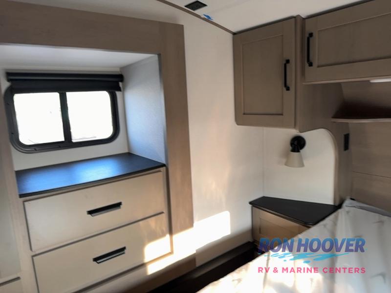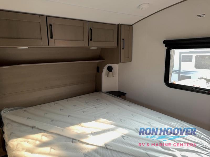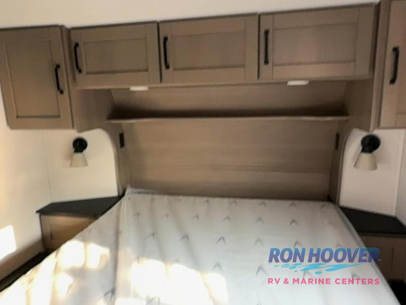 Whether you travel for pleasure or work, you will love the spacious main living and kitchen area with a rear tri-fold sofa that doubles as extra sleeping space, and the theater seating directly across from the entertainment center with a 40" LED HDTV and a fireplace below. The kitchen island will make meal prepping and drying the dishes easier and the hutch is the perfect place to place your picture frames, nice dishes, and extra cooking items. There is even a pantry that is big enough to store all of your favorite snacks, dry ingredients and such. Outside you can enjoy two electric awnings that provide protection from the elements as you relax and visit with other RVers, and your camping chairs can easily be stored in the pass-through compartment. The double entry bathroom is convenient especially at night when you can slide the door to enter from the front master bedroom. You will find plenty of storage for your clothing and gear, plus the bedroom slide out gives you drawers and linen storage that stretches into the full bathroom.