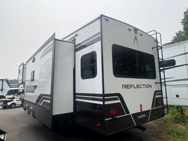 With any Reflection fifth wheel by Grand Design, you will have a solar panel for off-grid camping and a 60 amp charge controller and inverter prep, a Universal All-In-One docking station, unobstructed pass-through storage, and Goodyear Endurance tires. Each is constructed of gel coat exterior sidewalls, residential 5" truss rafters, walk-on roof decking, a fiberglass and radiant foil roof and front cap insulation plus laminated aluminum framed side walls, roof and end walls in slide rooms. Head inside to enjoy residential hardwood cabinet doors, premium Congoleum flooring, a spacious shower with a glass door, and many more comforts!
