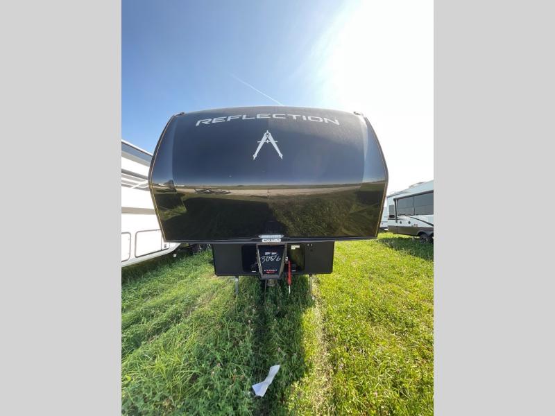 With any Reflection fifth wheel by Grand Design, you will have a solar panel for off-grid camping and a 60 amp charge controller and inverter prep, a Universal All-In-One docking station, unobstructed pass-through storage, and Goodyear Endurance tires. Each is constructed of gel coat exterior sidewalls, residential 5" truss rafters, walk-on roof decking, a fiberglass and radiant foil roof and front cap insulation plus laminated aluminum framed side walls, roof and end walls in slide rooms. Head inside to enjoy residential hardwood cabinet doors, premium Congoleum flooring, a spacious shower with a glass door, and many more comforts!