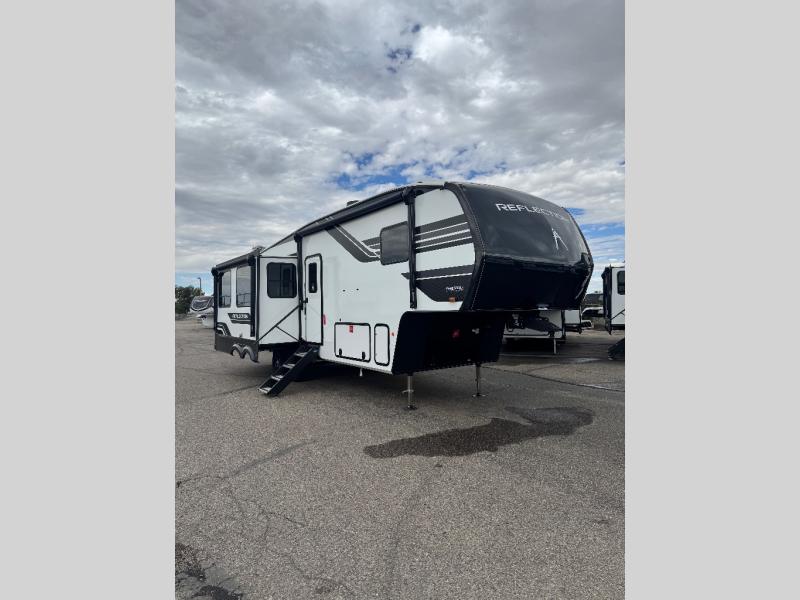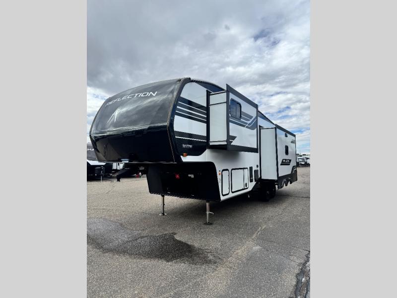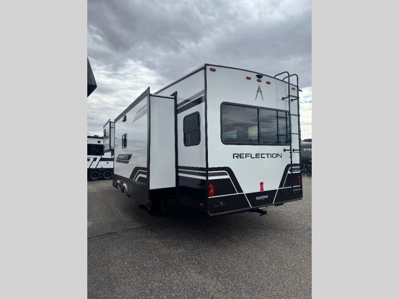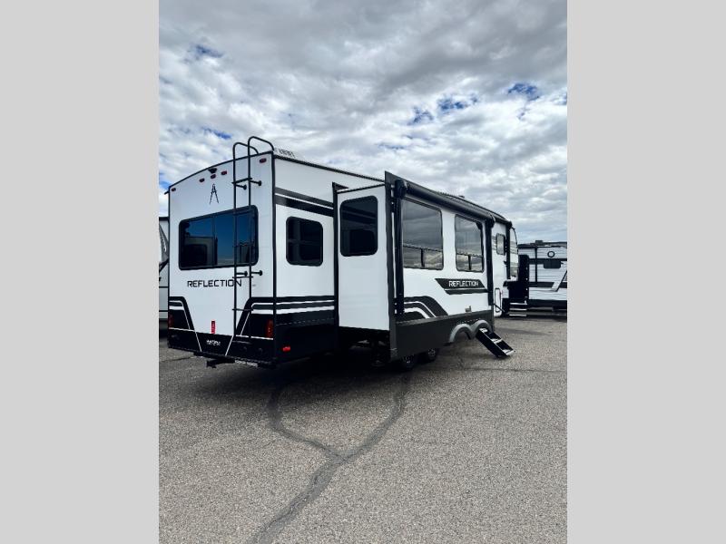 With any Reflection fifth wheel by Grand Design, you will have a solar panel for off-grid camping and a 60 amp charge controller and inverter prep, a Universal All-In-One docking station, unobstructed pass-through storage, and Goodyear Endurance tires. Each is constructed of gel coat exterior sidewalls, residential 5" truss rafters, walk-on roof decking, a fiberglass and radiant foil roof and front cap insulation plus laminated aluminum framed side walls, roof and end walls in slide rooms. Head inside to enjoy residential hardwood cabinet doors, premium Congoleum flooring, a spacious shower with a glass door, and many more comforts!