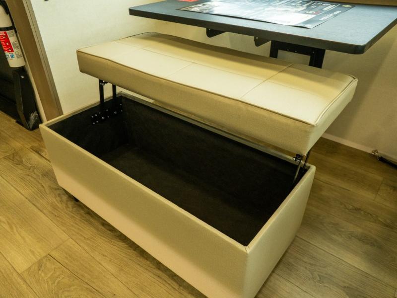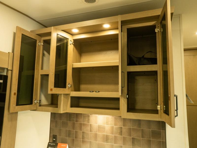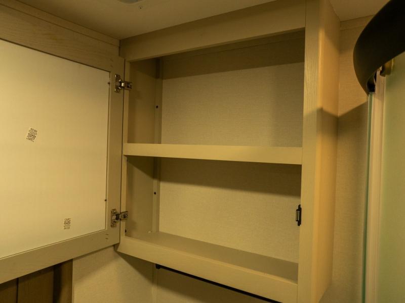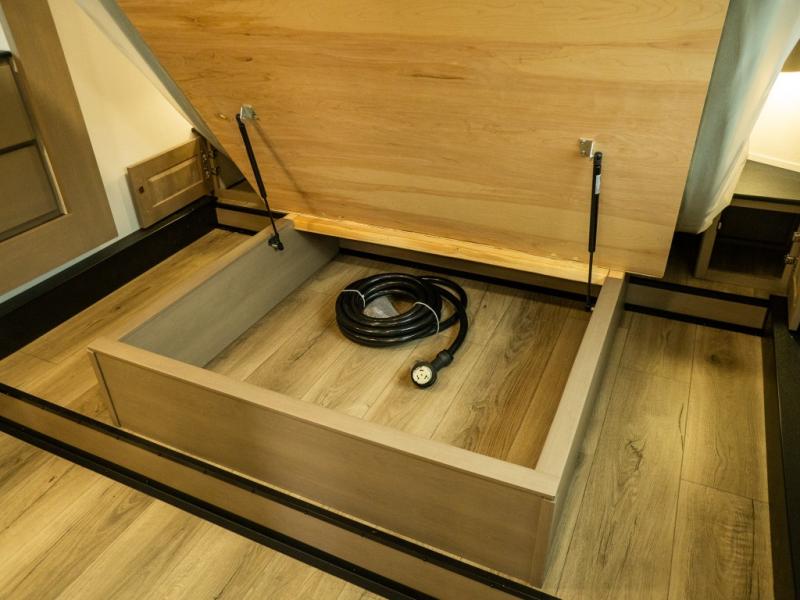 What I liked most: Sturdy aluminum steps feel reassuring and safe. The wood cabinets look great and provide lots of storage. The fireplace looks great right below the entertainment center. I really like the cabinet and nightstand on each side of the bed and the overhead shelf. Also, the leather rectangular piece on the headboard of the bed is a nice touch and makes this a more unique bedroom.