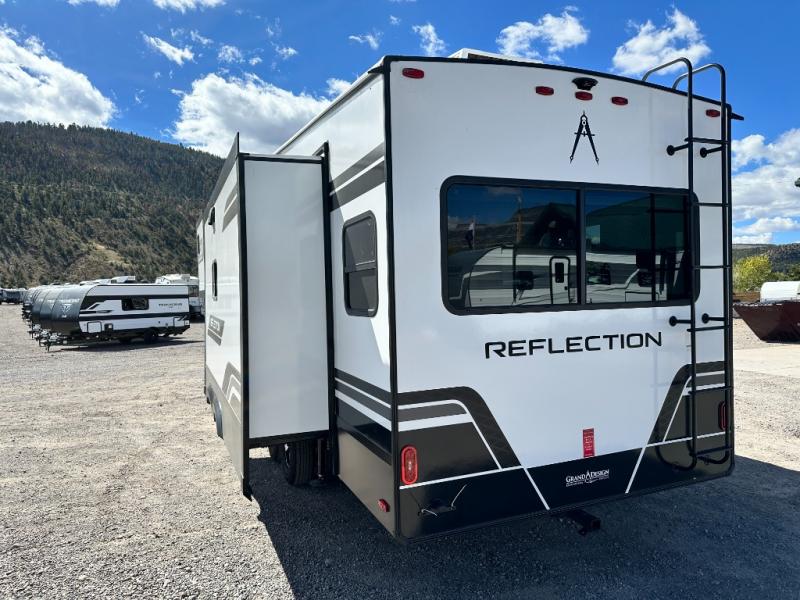 With any Reflection fifth wheel by Grand Design, you will have a solar panel for off-grid camping and a 60 amp charge controller and inverter prep, a Universal All-In-One docking station, unobstructed pass-through storage, and Goodyear Endurance tires. Each is constructed of gel coat exterior sidewalls, residential 5" truss rafters, walk-on roof decking, a fiberglass and radiant foil roof and front cap insulation plus laminated aluminum framed side walls, roof and end walls in slide rooms. Head inside to enjoy residential hardwood cabinet doors, premium Congoleum flooring, a spacious shower with a glass door, and many more comforts!