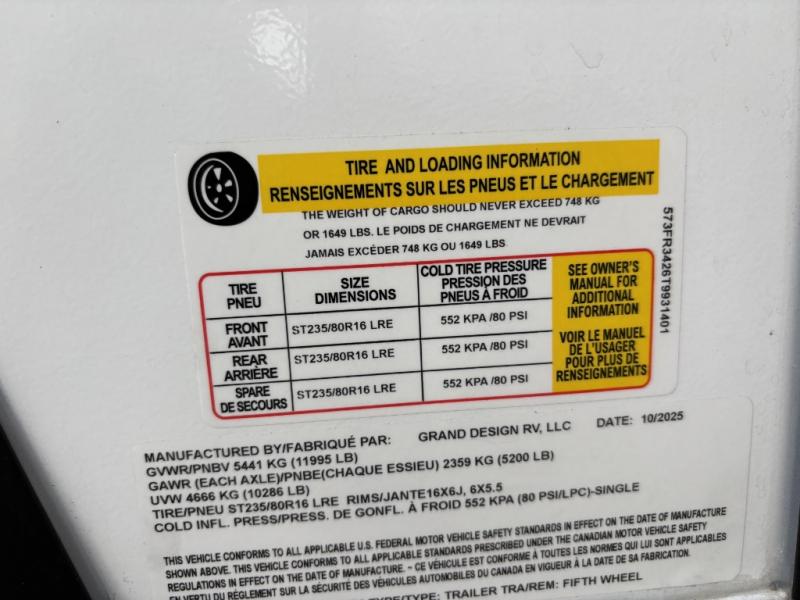 New 2026 Grand Design Reflection 303RLS Fifth Wheel