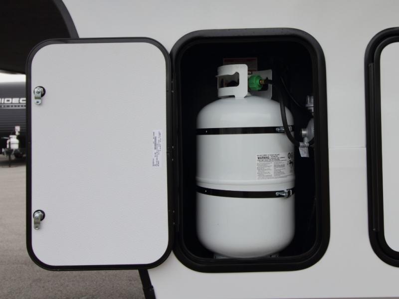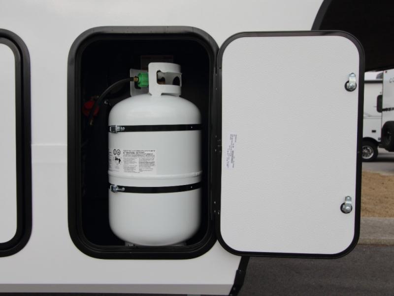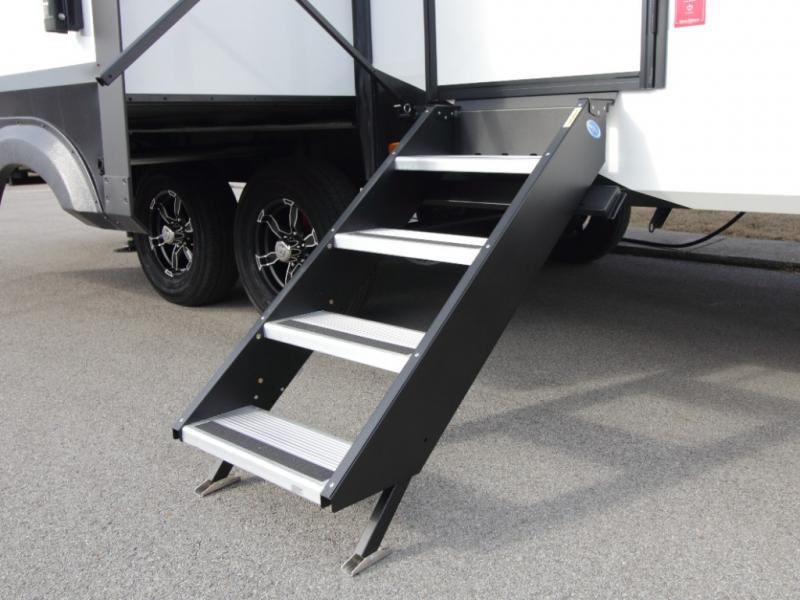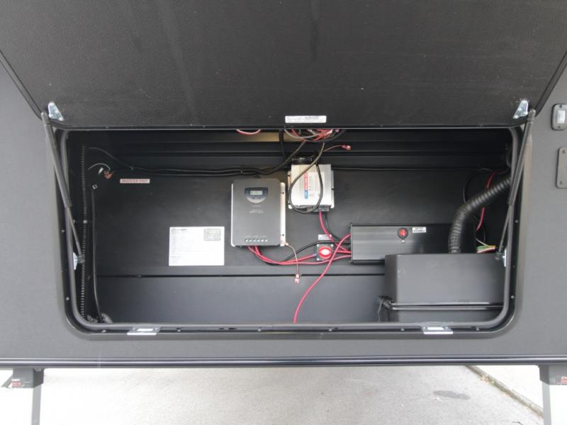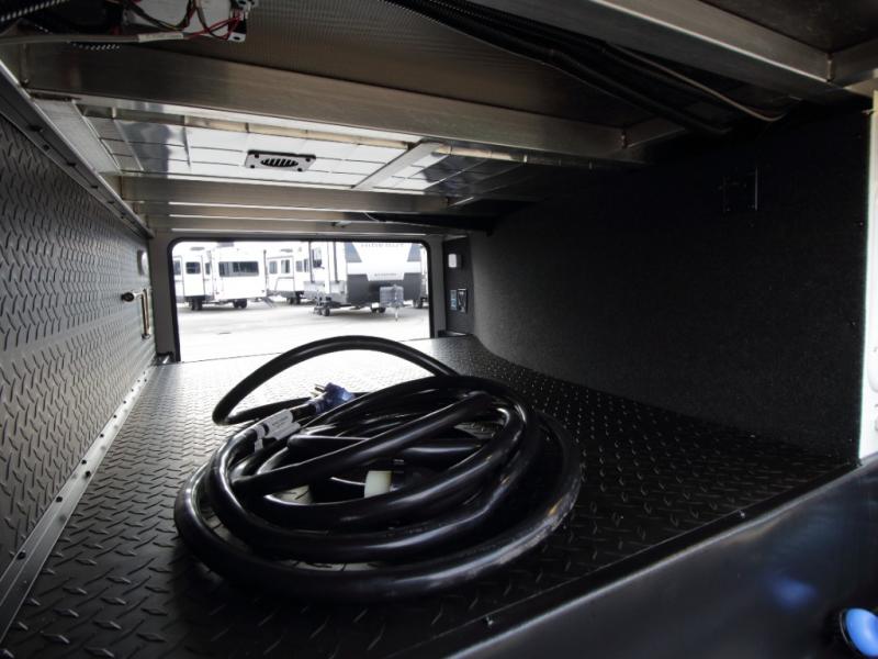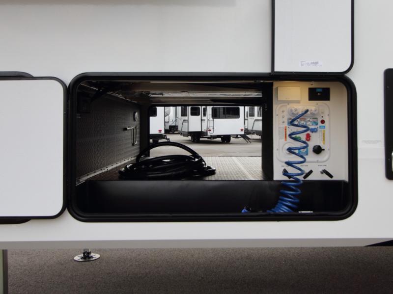 Outdoor living is just as enjoyable with dual electric awnings that provide shade and comfort for relaxing with friends or neighbors at the campground. Camping chairs, outdoor gear, and tools can be conveniently stored in the unobstructed pass-through storage compartment.