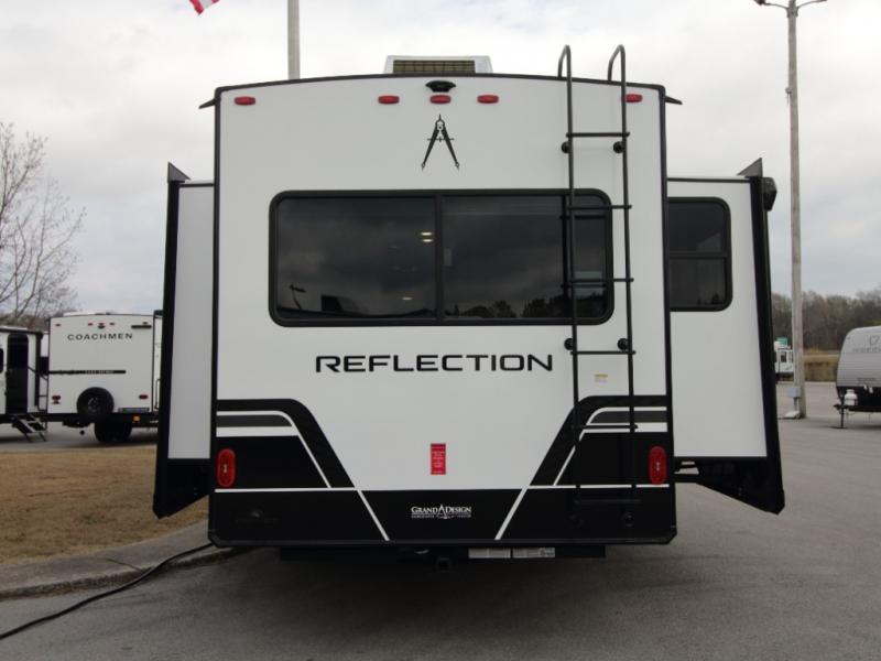 Every Grand Design Reflection fifth wheel is built for durability, comfort, and long-term travel. Standard features include a solar panel with a 60-amp charge controller and inverter prep for off-grid capability, a Universal All-In-One Docking Station for simplified hookups, and Goodyear Endurance tires for reliable towing.