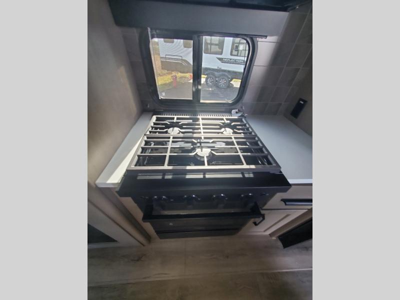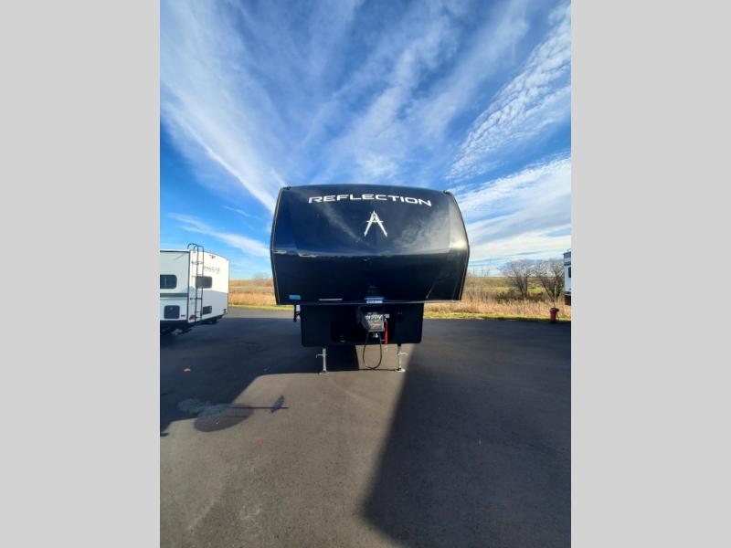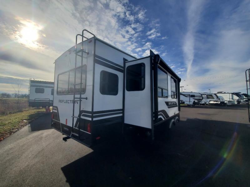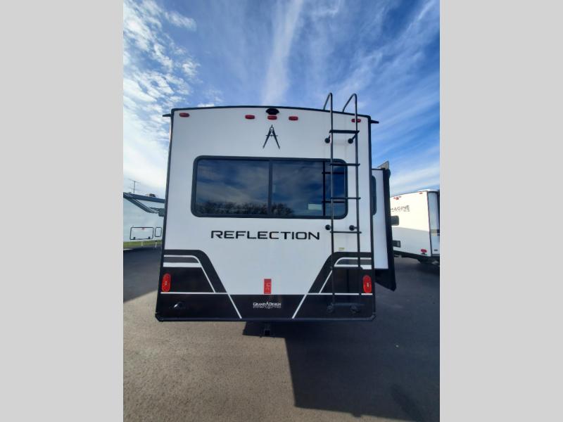 With any Reflection fifth wheel by Grand Design, you will have a solar panel for off-grid camping and a 60 amp charge controller and inverter prep, a Universal All-In-One docking station, unobstructed pass-through storage, and Goodyear Endurance tires. Each is constructed of gel coat exterior sidewalls, residential 5" truss rafters, walk-on roof decking, a fiberglass and radiant foil roof and front cap insulation plus laminated aluminum framed side walls, roof and end walls in slide rooms. Head inside to enjoy residential hardwood cabinet doors, premium Congoleum flooring, a spacious shower with a glass door, and many more comforts!