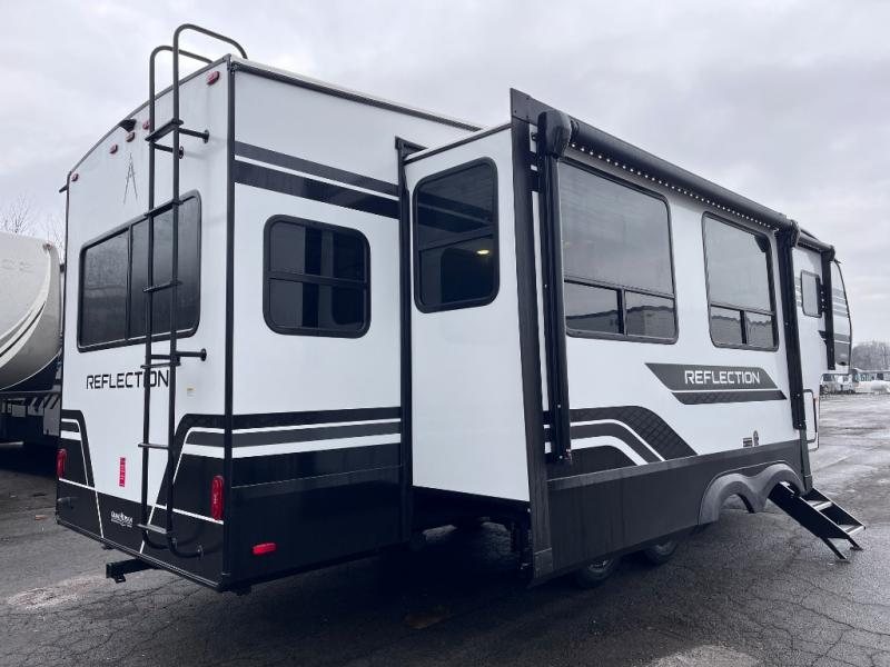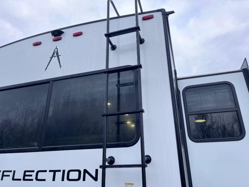 With any Reflection fifth wheel by Grand Design, you will have a solar panel for off-grid camping and a 60 amp charge controller and inverter prep, a Universal All-In-One docking station, unobstructed pass-through storage, and Goodyear Endurance tires. Each is constructed of gel coat exterior sidewalls, residential 5" truss rafters, walk-on roof decking, a fiberglass and radiant foil roof and front cap insulation plus laminated aluminum framed side walls, roof and end walls in slide rooms. Head inside to enjoy residential hardwood cabinet doors, premium Congoleum flooring, a spacious shower with a glass door, and many more comforts!