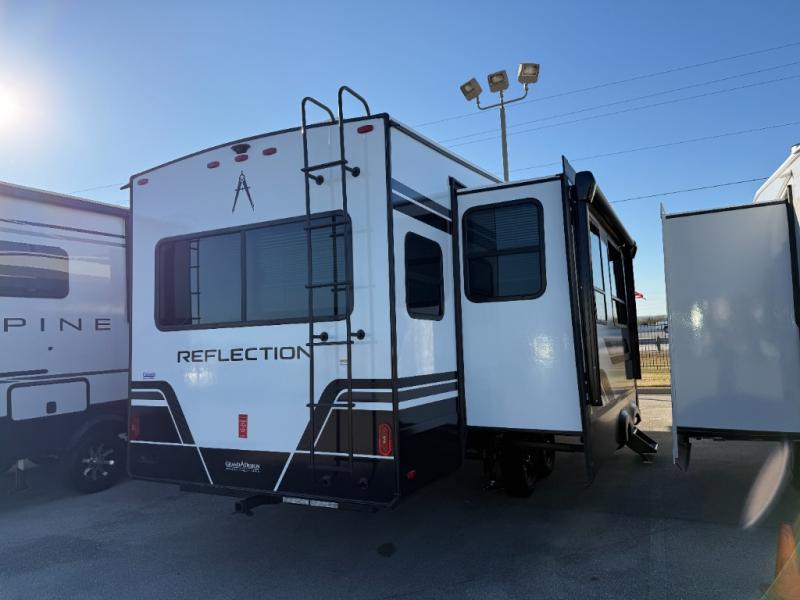 With any Reflection fifth wheel by Grand Design, you will have a solar panel for off-grid camping and a 60 amp charge controller and inverter prep, a Universal All-In-One docking station, unobstructed pass-through storage, and Goodyear Endurance tires. Each is constructed of gel coat exterior sidewalls, residential 5" truss rafters, walk-on roof decking, a fiberglass and radiant foil roof and front cap insulation plus laminated aluminum framed side walls, roof and end walls in slide rooms. Head inside to enjoy residential hardwood cabinet doors, premium Congoleum flooring, a spacious shower with a glass door, and many more comforts!